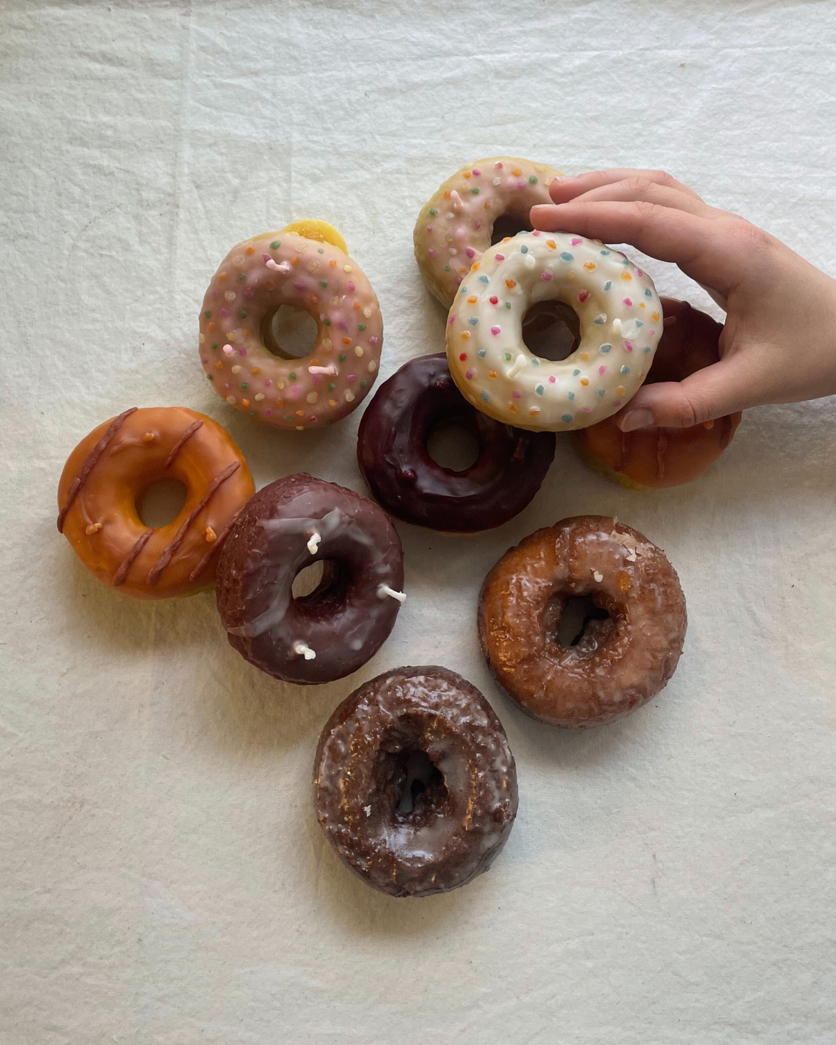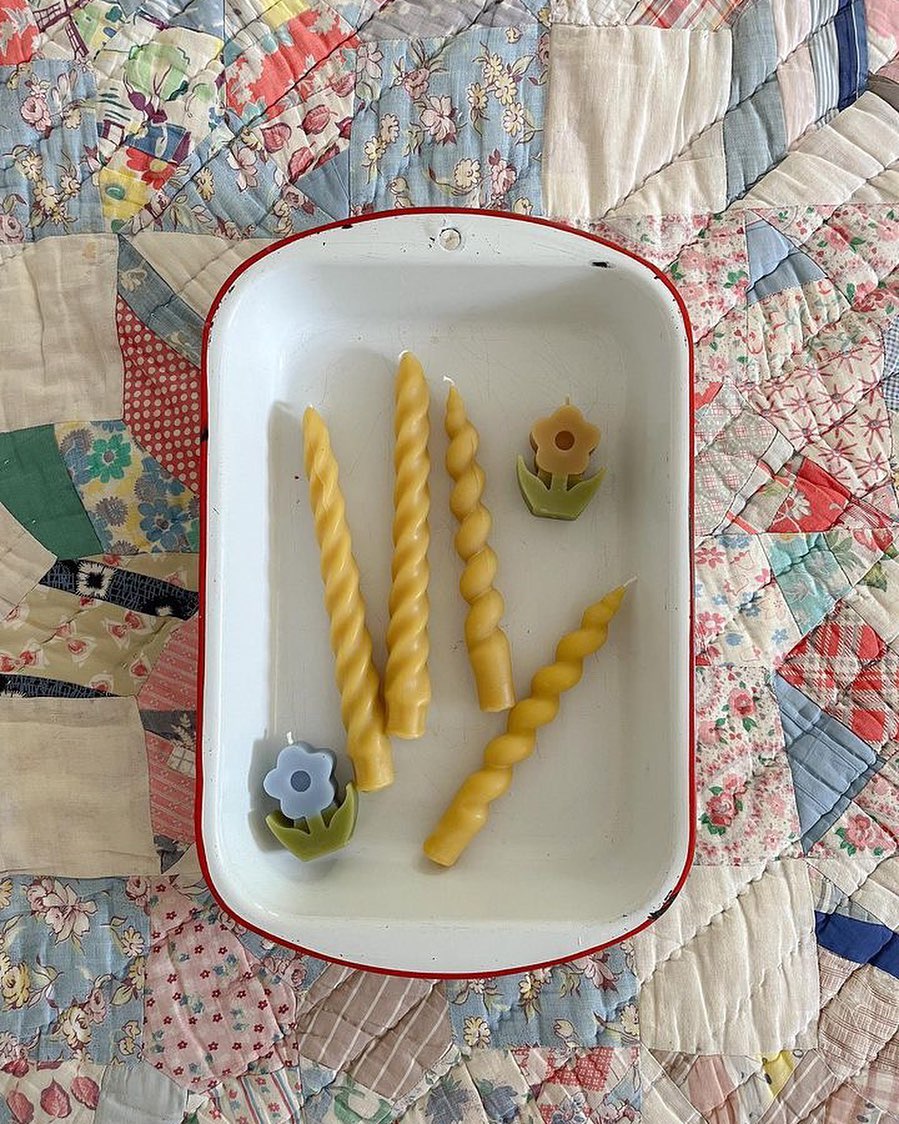 All the hand-dipped, fuit candle + number beeswax candles for your cakes...