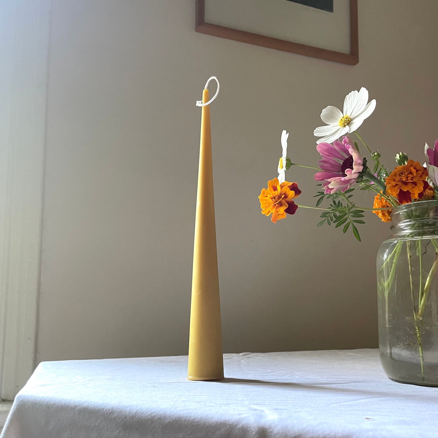 pure beeswax cone candles in 6", 8". 10" and 12" heights