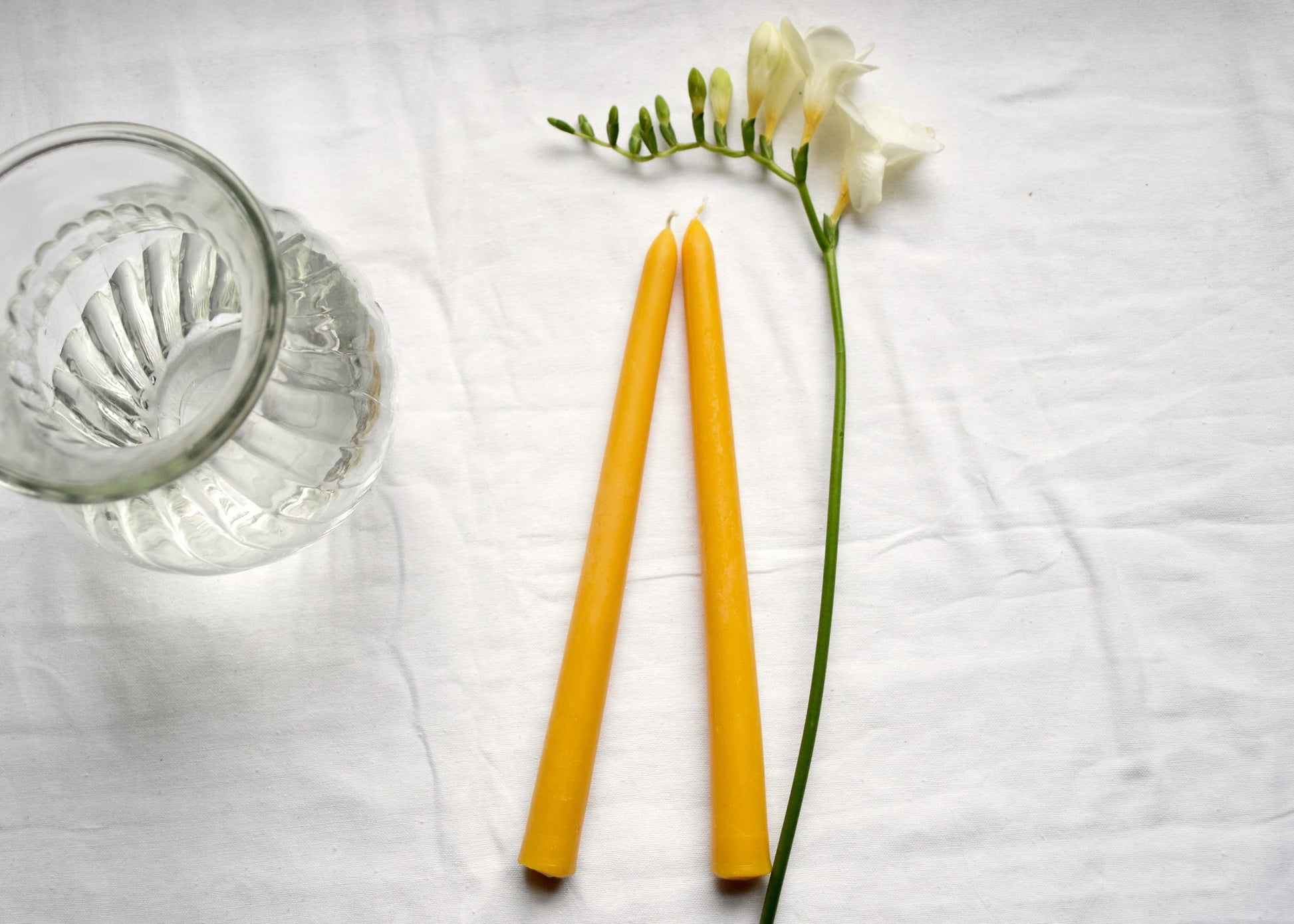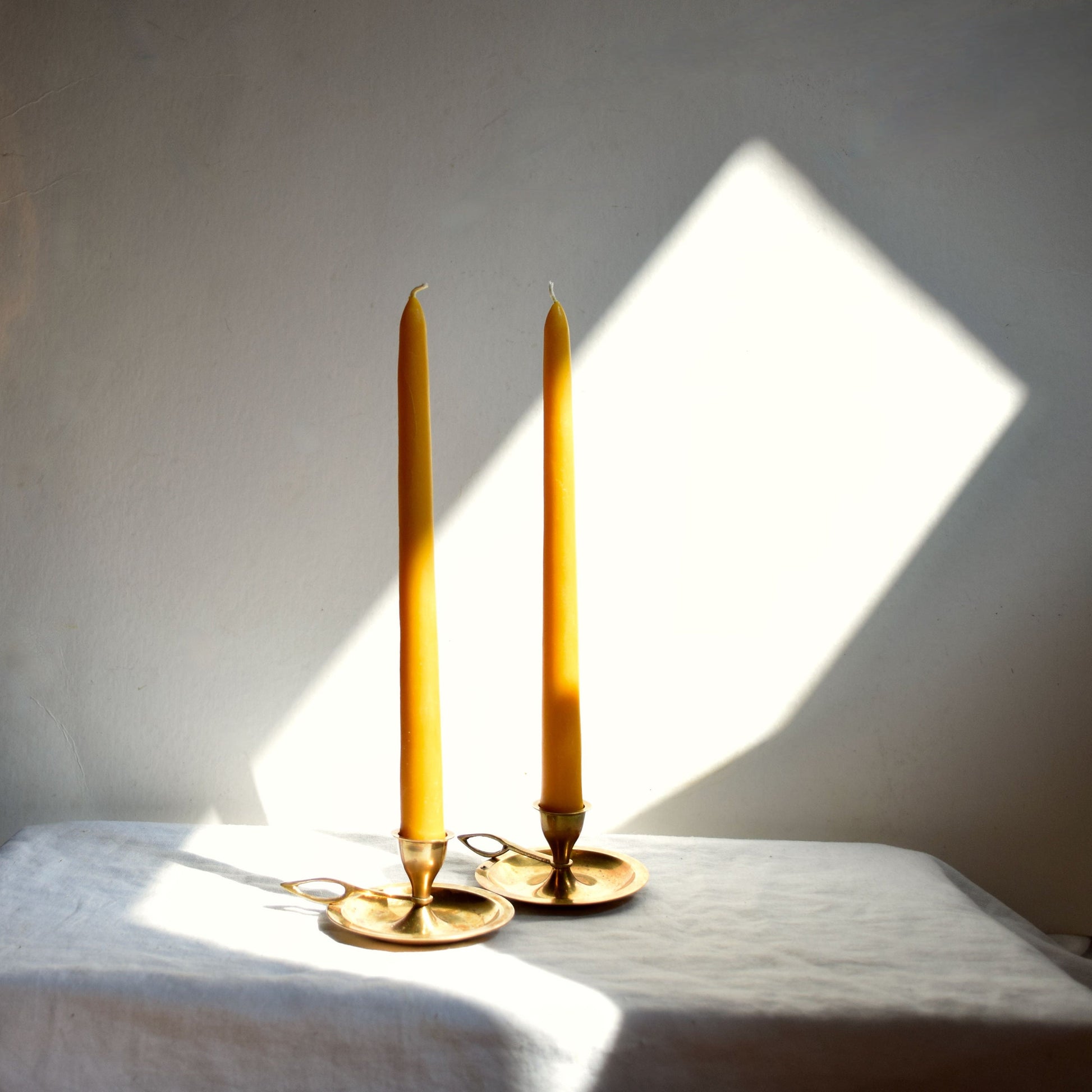 Extra tall taper candles. š Here's a pair of beautiful, smooth 10" pure beeswax taper candles. They burn so slowly! Depending on your space and drafts, they can be dripless or drip only minimally.