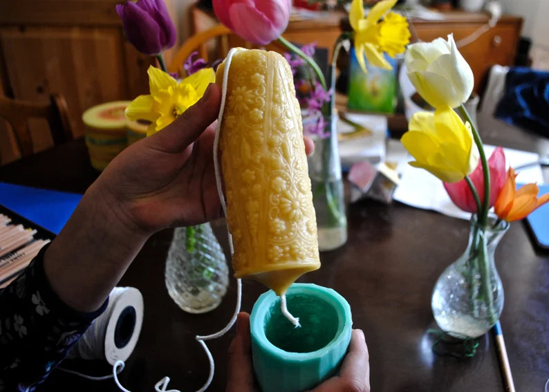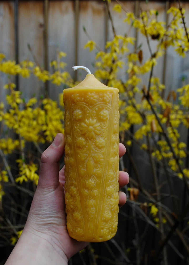 1800s Flower Pillar in Pure Beeswax // Pillar Candle Cast from Actual Candle from 1800s / Beeswax Candle