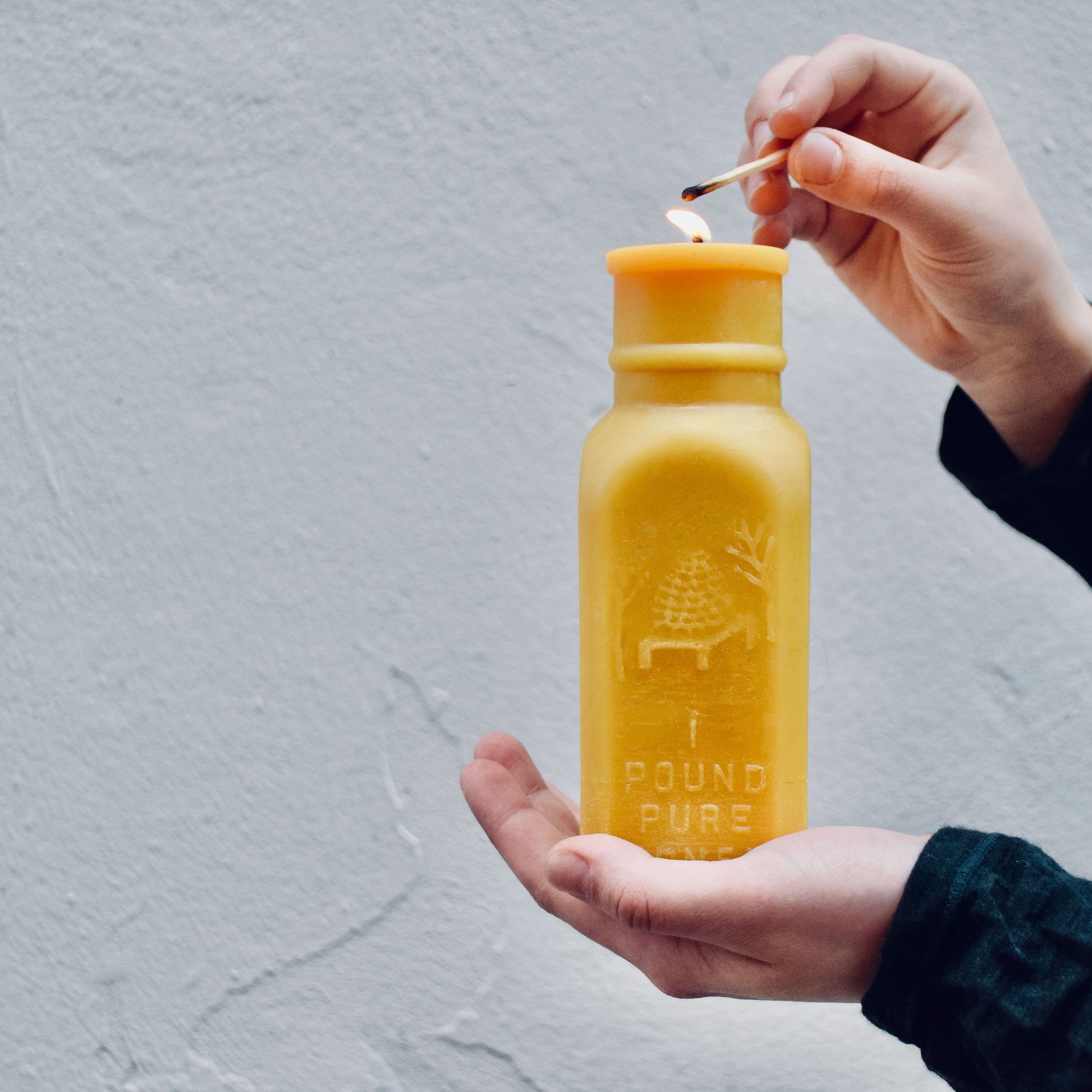 Beeswax Candle, Antique Honey Bottle - Bottle Candle in Pure 100% Beeswax // Beeswax, Candle