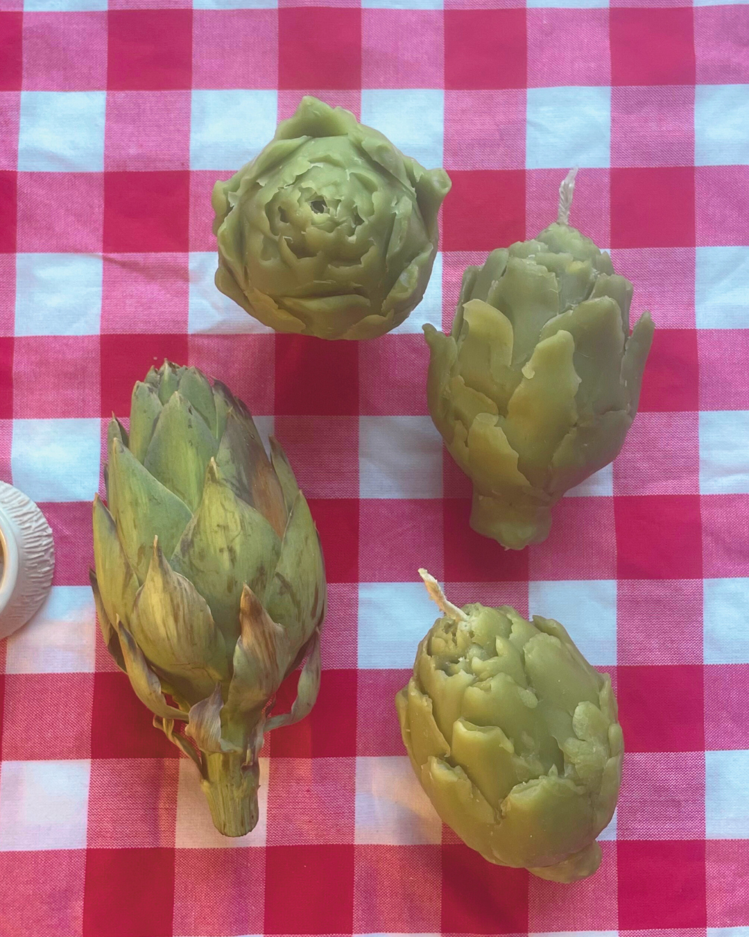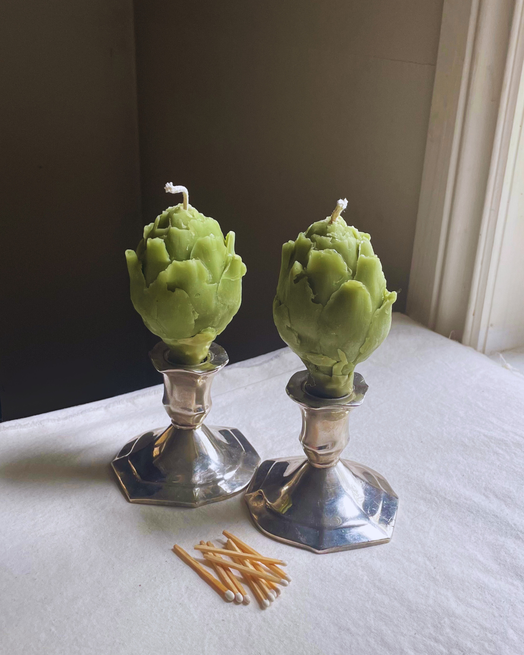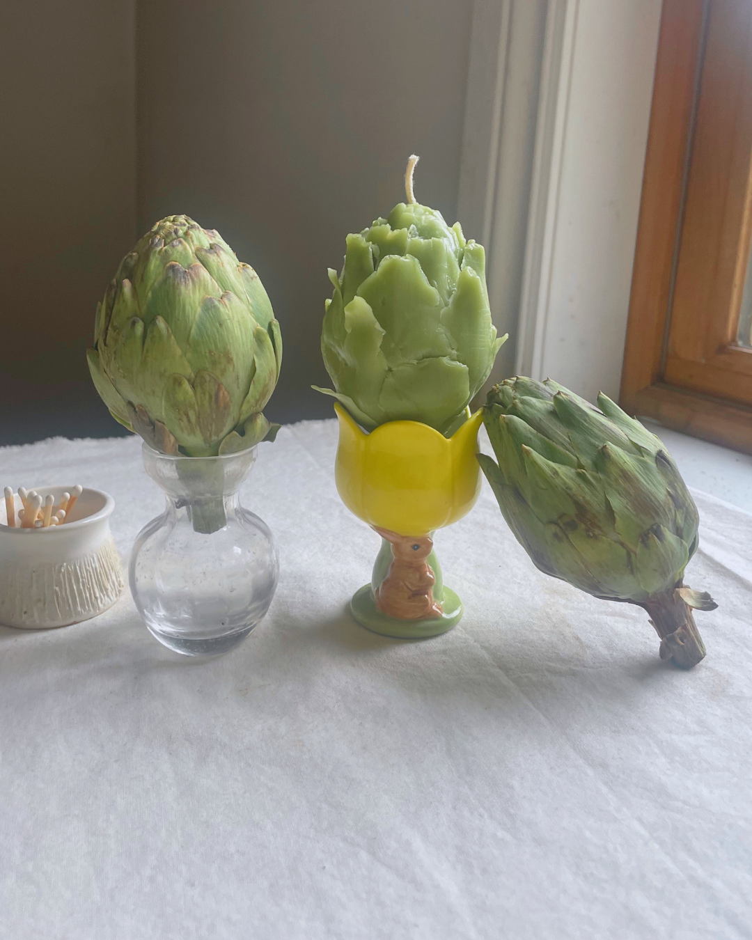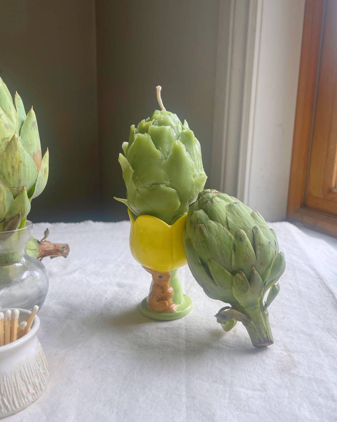 FRESH from the Italian artichoke harvest A big, beautiful green beeswax artichoke candle.