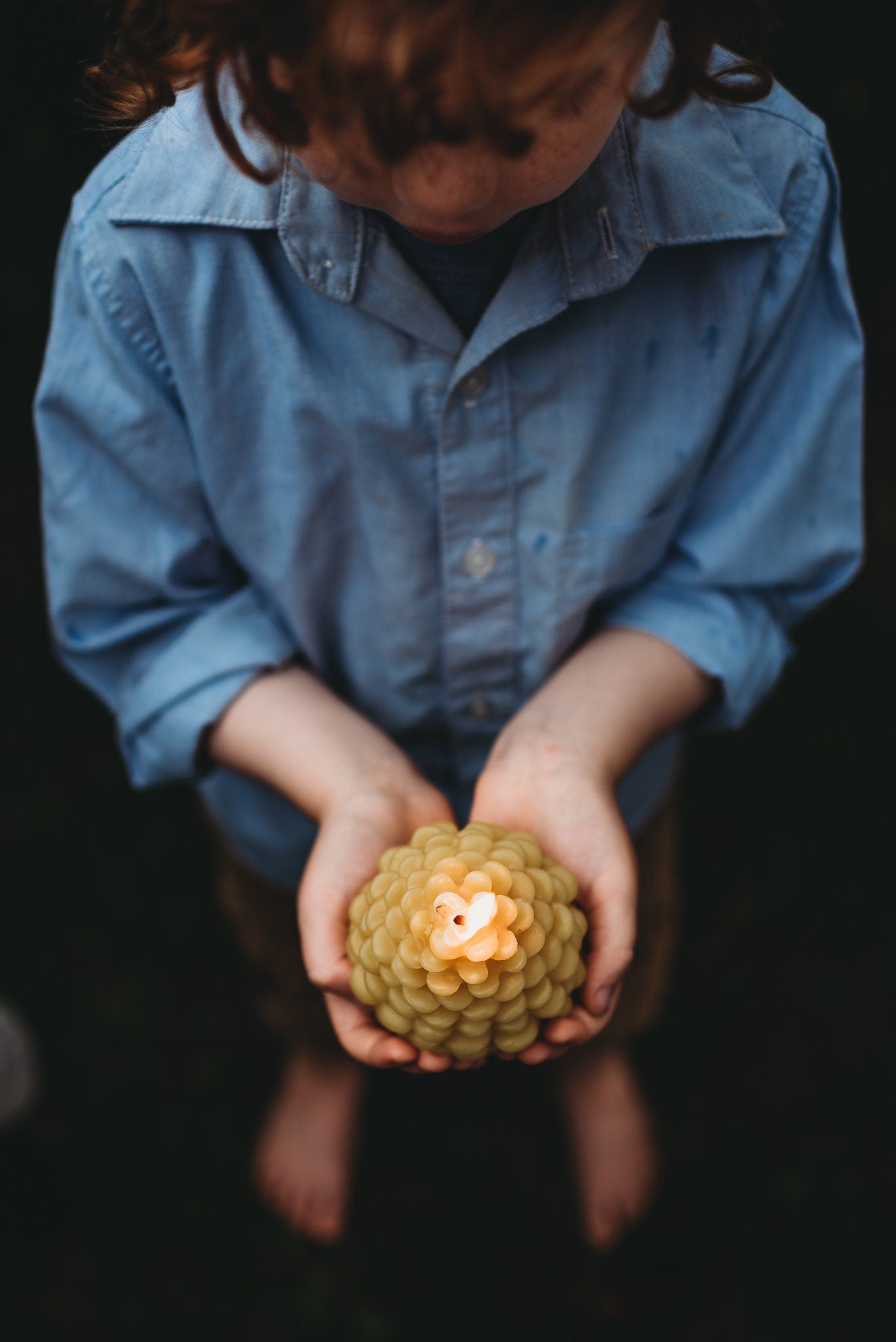 Pure beeswax pinecone candle. This is my best selling candle, and longtime customer favorite. It burns down so beautifully and gives off the sweetest honey aroma. Handcrafted with local beeswax I filter myself, pure cotton wick and lots of love.