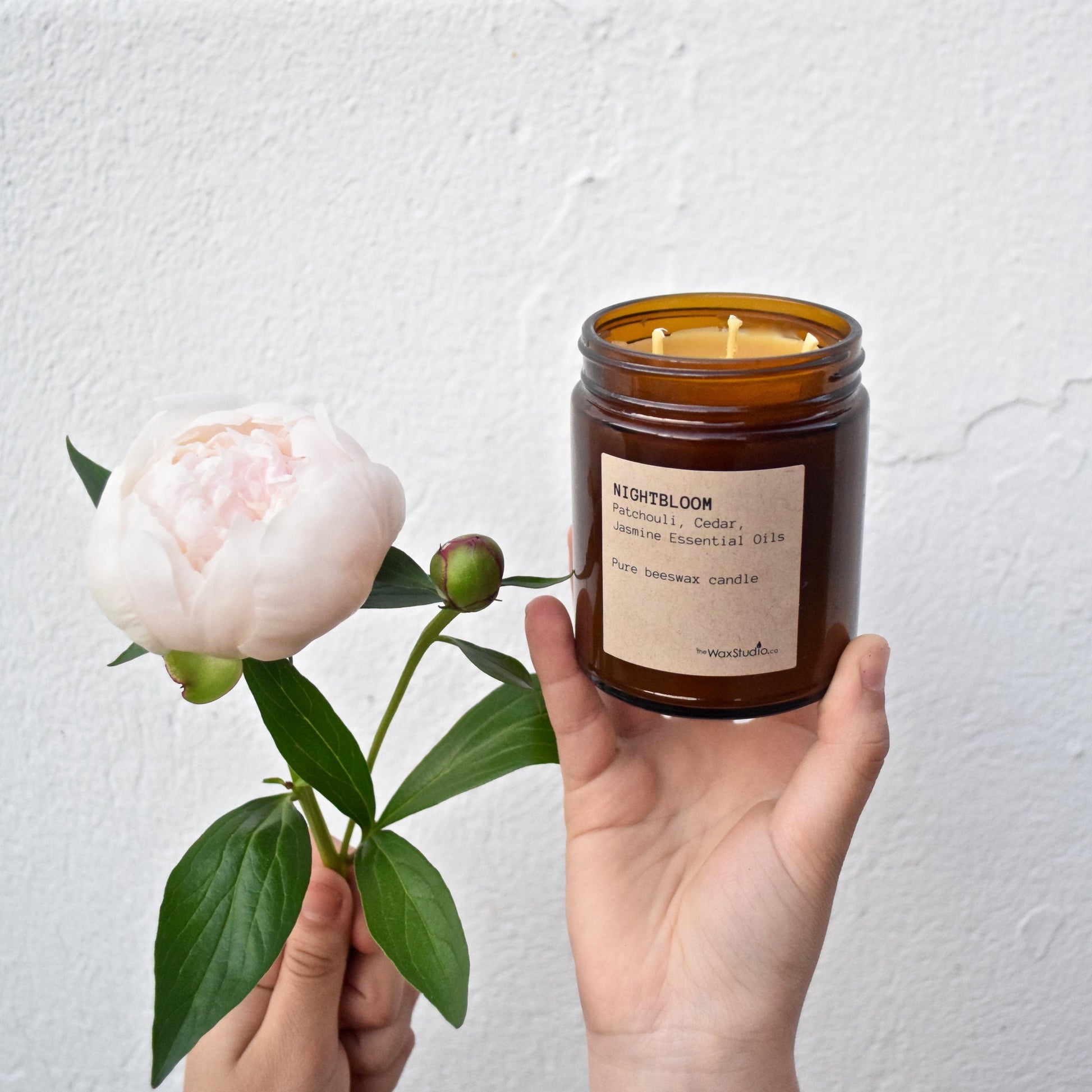 Because some of the most beautiful flowers in the world bloom at night. NIGHTBLOOM: pure 100% beeswax + cedarwood, patchouli and jasmine fir essential oils. Each triple-wicked candle will burn for over 50 hours. Handcrafted from pure local beeswax I filter myself + pure cotton wick + aromatherapy-grade essential oils.