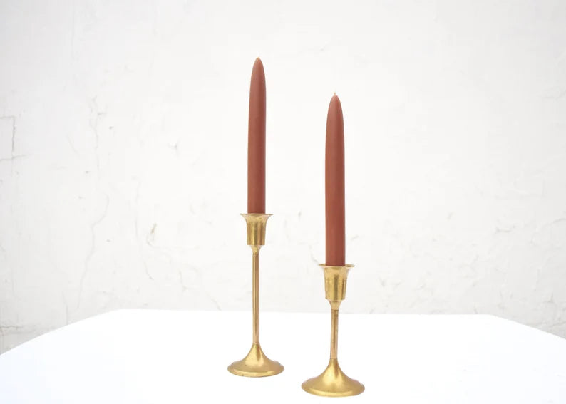 Beeswax Taper Pair in Caramel Brown- Beeswax, Candles, Taper Pair of Two 8"