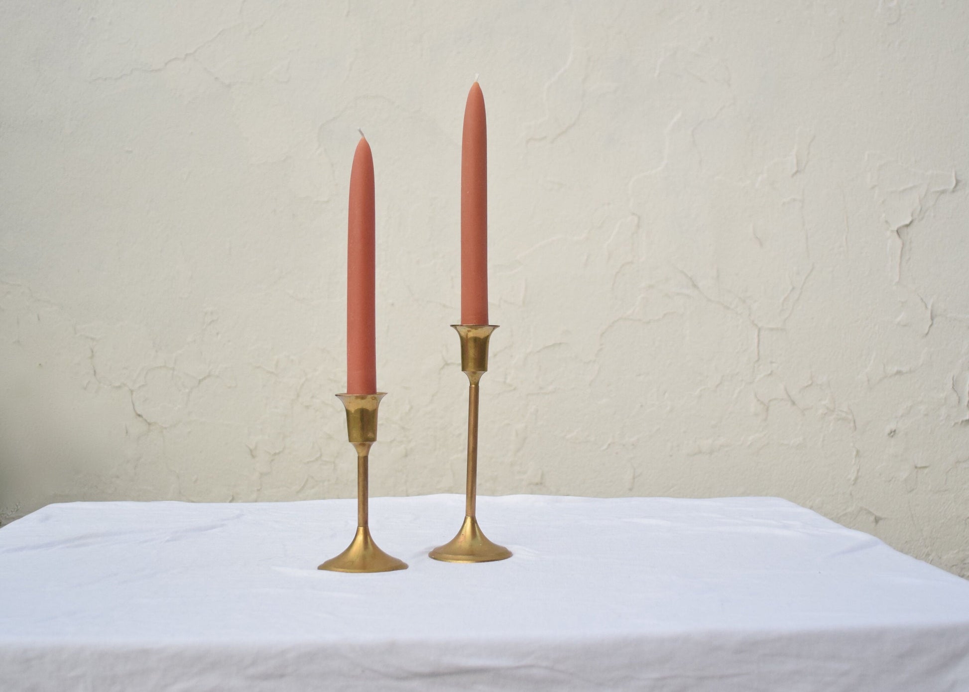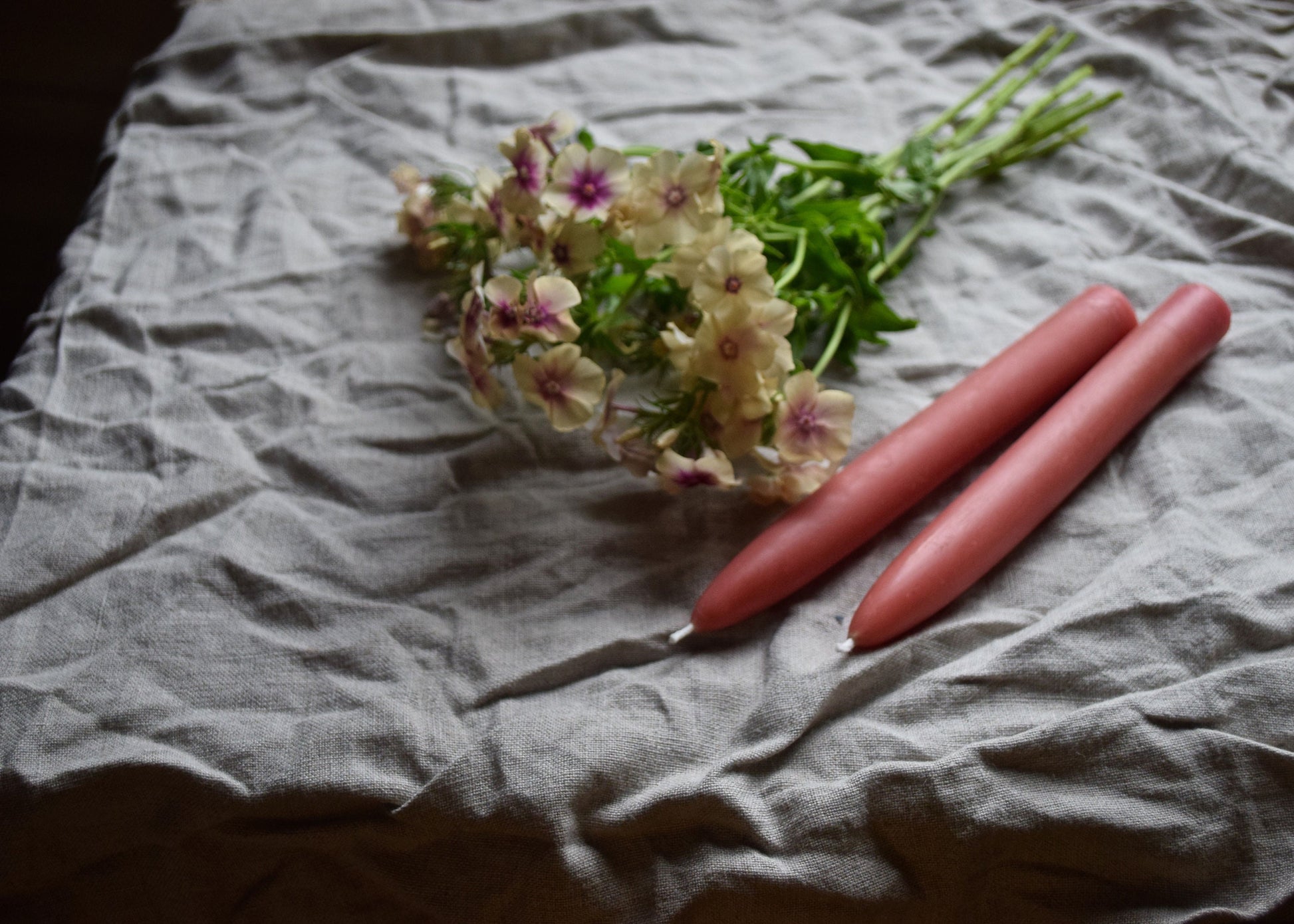 Peachy rose beeswax tapers.