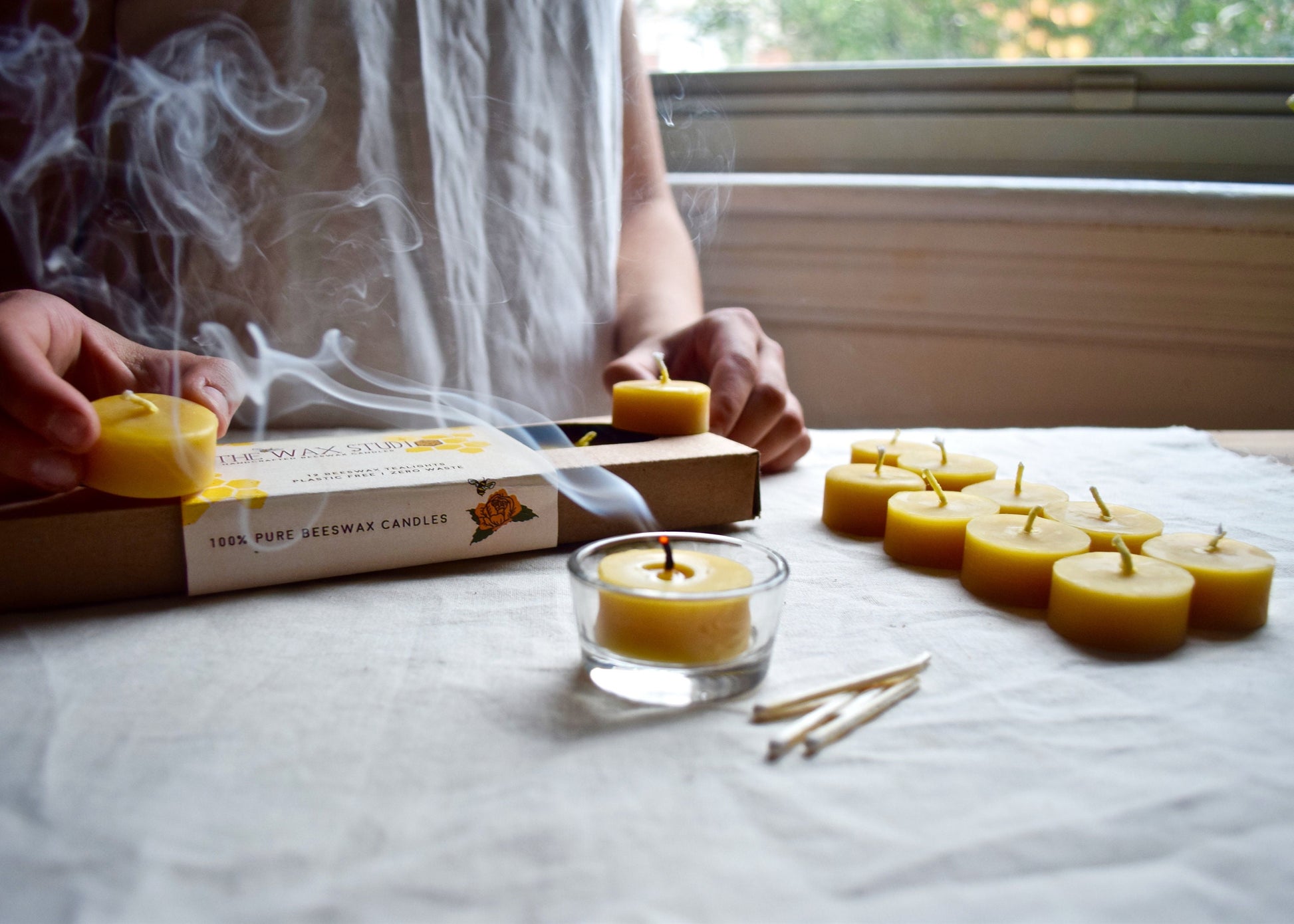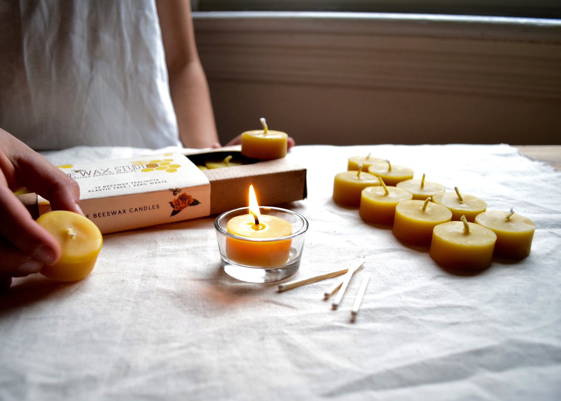 Beeswax Tealights - Candles - Plastic-free Beeswax Tealight Candles Set of 12 / Zero-Waste, Beeswax, Tealights, Tealight Candles