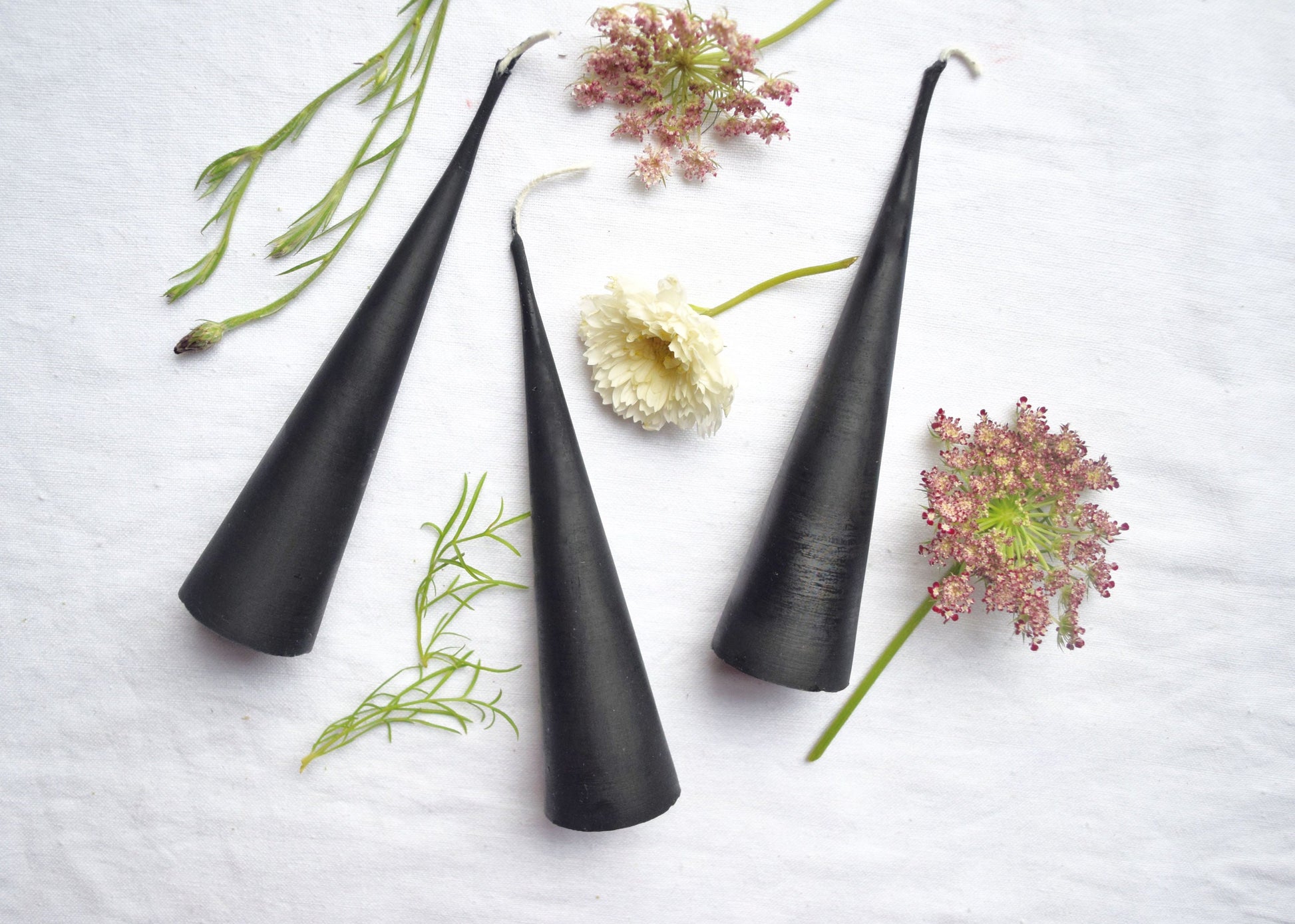 COLOR: These are for black cone candles but you can mix and match with other beeswax cone candles in my shop (see other listings for yellow, off-white, red, green, pastels, etc.)