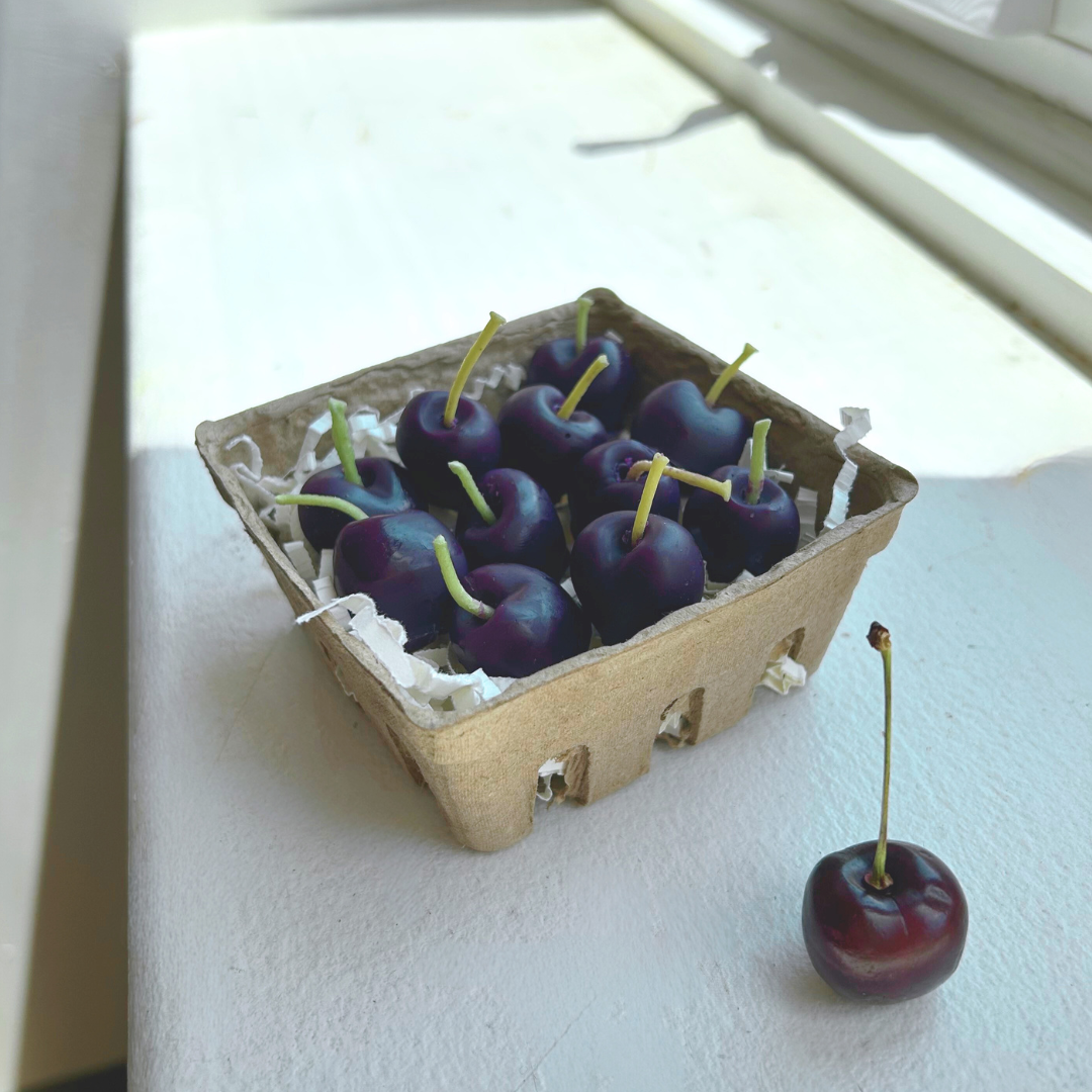 Black cherries - beeswax candles - cake candles - CHERRIES SET of 12 - pure beeswax - candle, beeswax, cherries, fruit candles