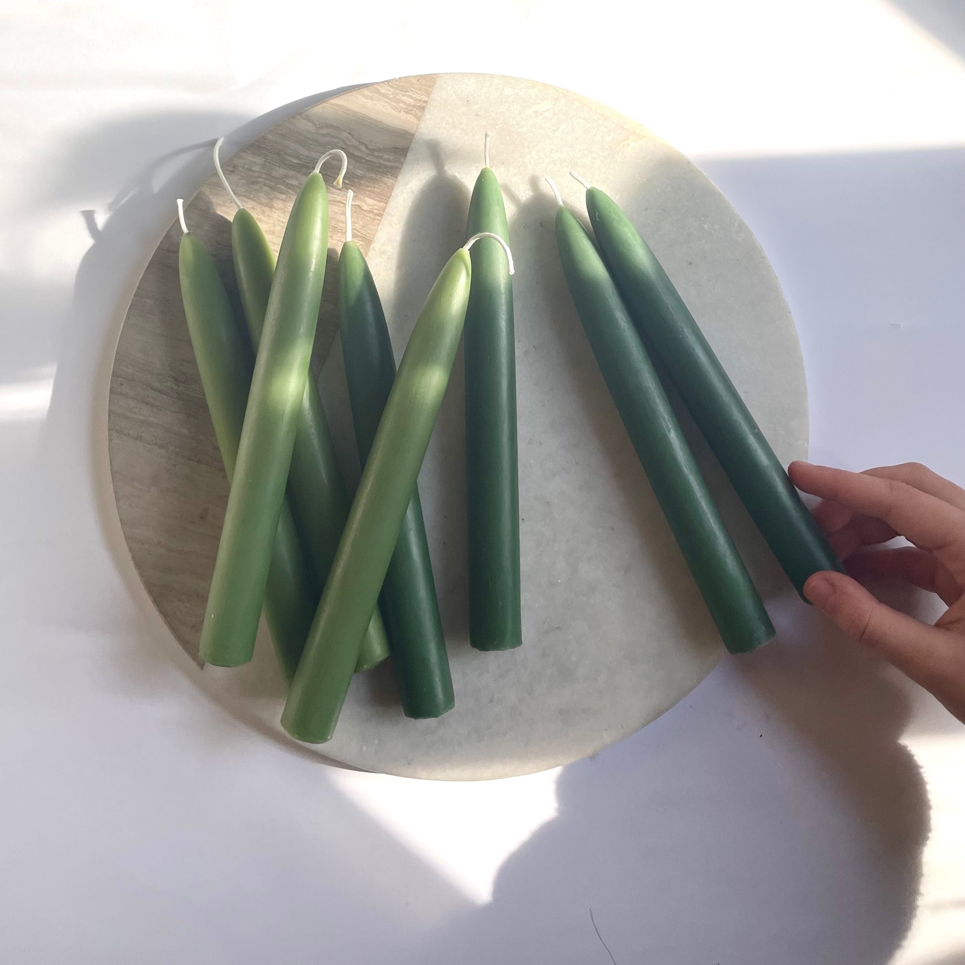 Green Beeswax Taper Candles, Pair of 2 // Tapers, Beeswax Candles, 8" Tapers, Eco Friendly, Candles