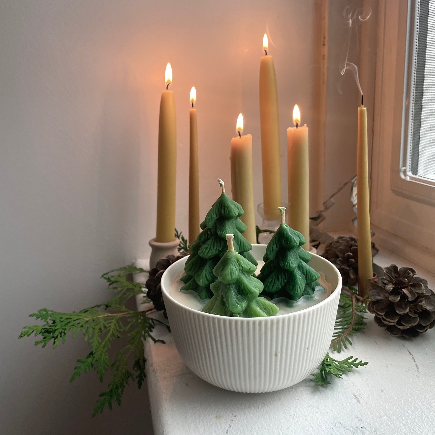 An evergreen bowl candle in pure, 100% beeswax. Brand new for Christmas 2023, super limited edition + local Ottawa pick-up only (no shipping available on these)....Here are the details: