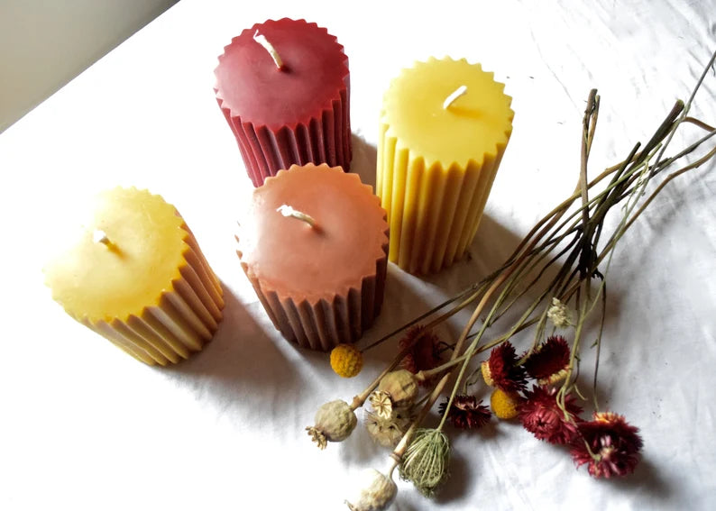 Fluted Pillar Candles/ Candle, Pillar Candle, Beeswax Candles, Beeswax - Two Sizes, in Burgundy, Caramel and Golden Yellow - Eco Luxury