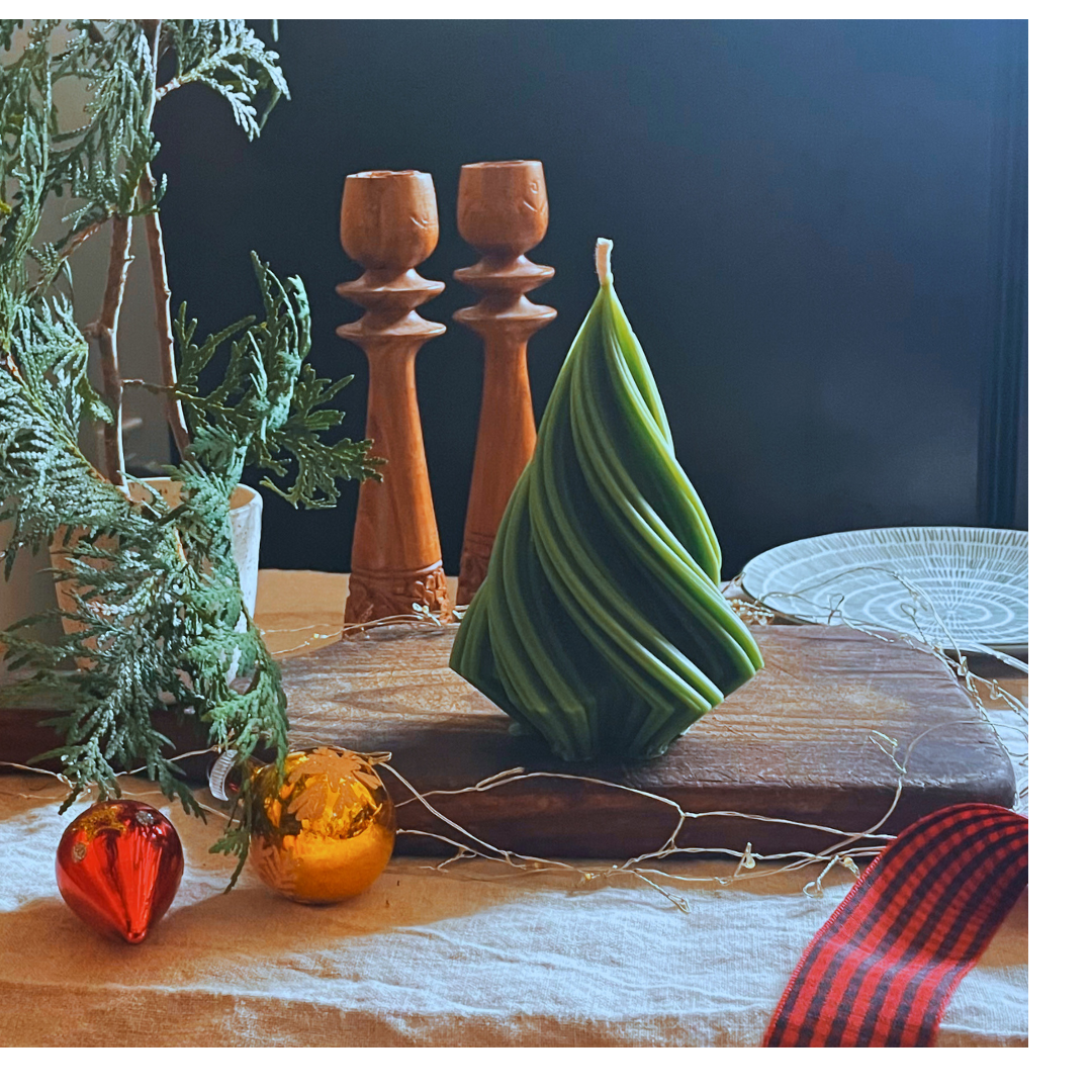 Forest Green Tree Candle - Beeswax Candle - Christmas Tree Candle, Beeswax, Swirly Sculptural Tree