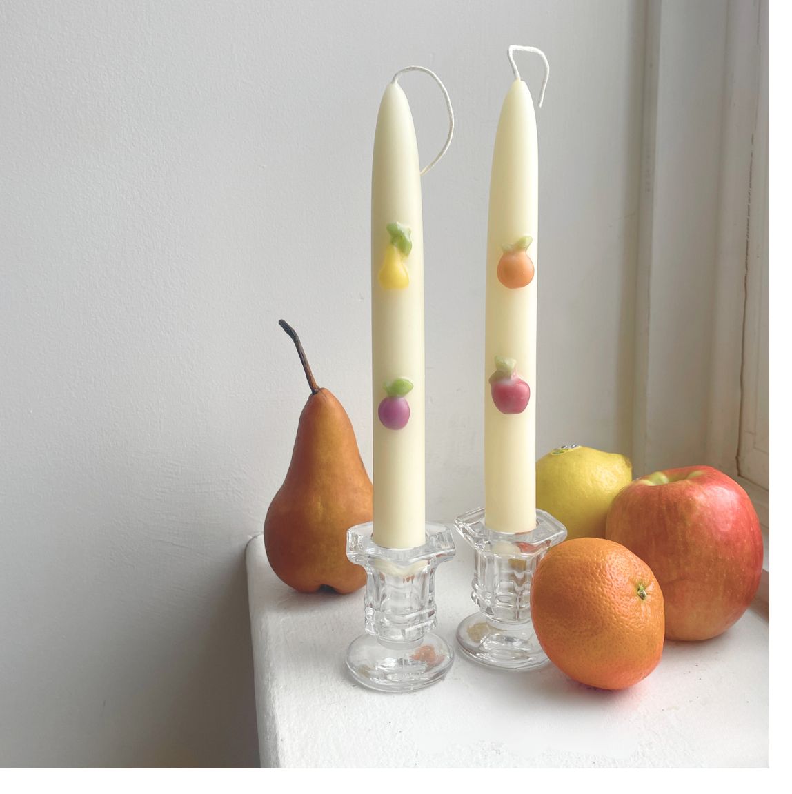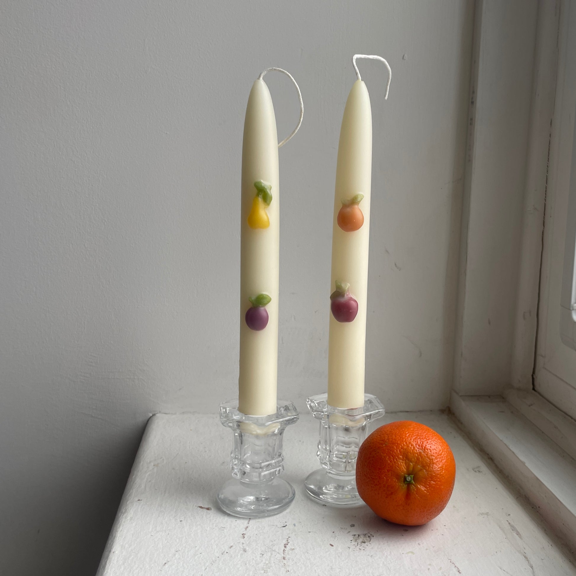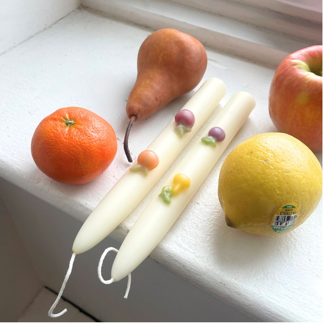 Fruit Beeswax Tapers - Pair of 2 // Tapers, Fruit, Candles, Food Candles, Beeswax, Fruit Salad