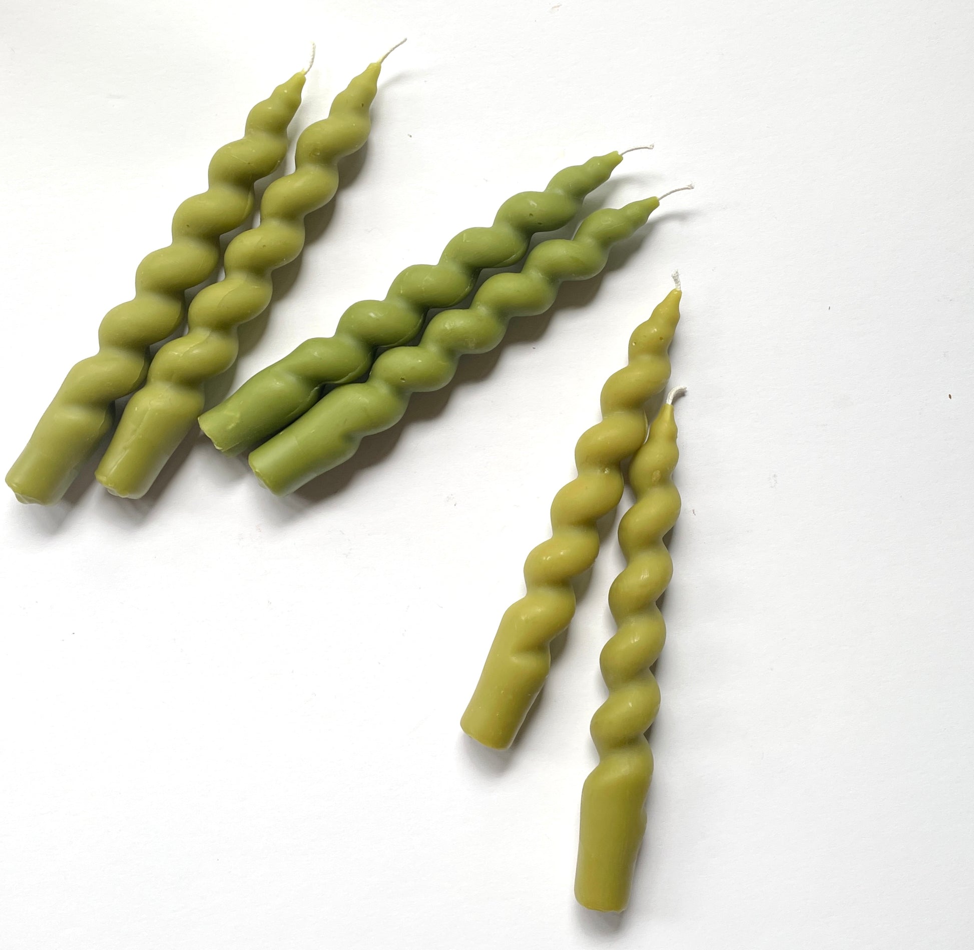 Green Beeswax Wavy Curvy Taper Candles, Pair of 2 // Tapers, Twist, Tapered Candles, Beeswax Candles, 8" Tapers