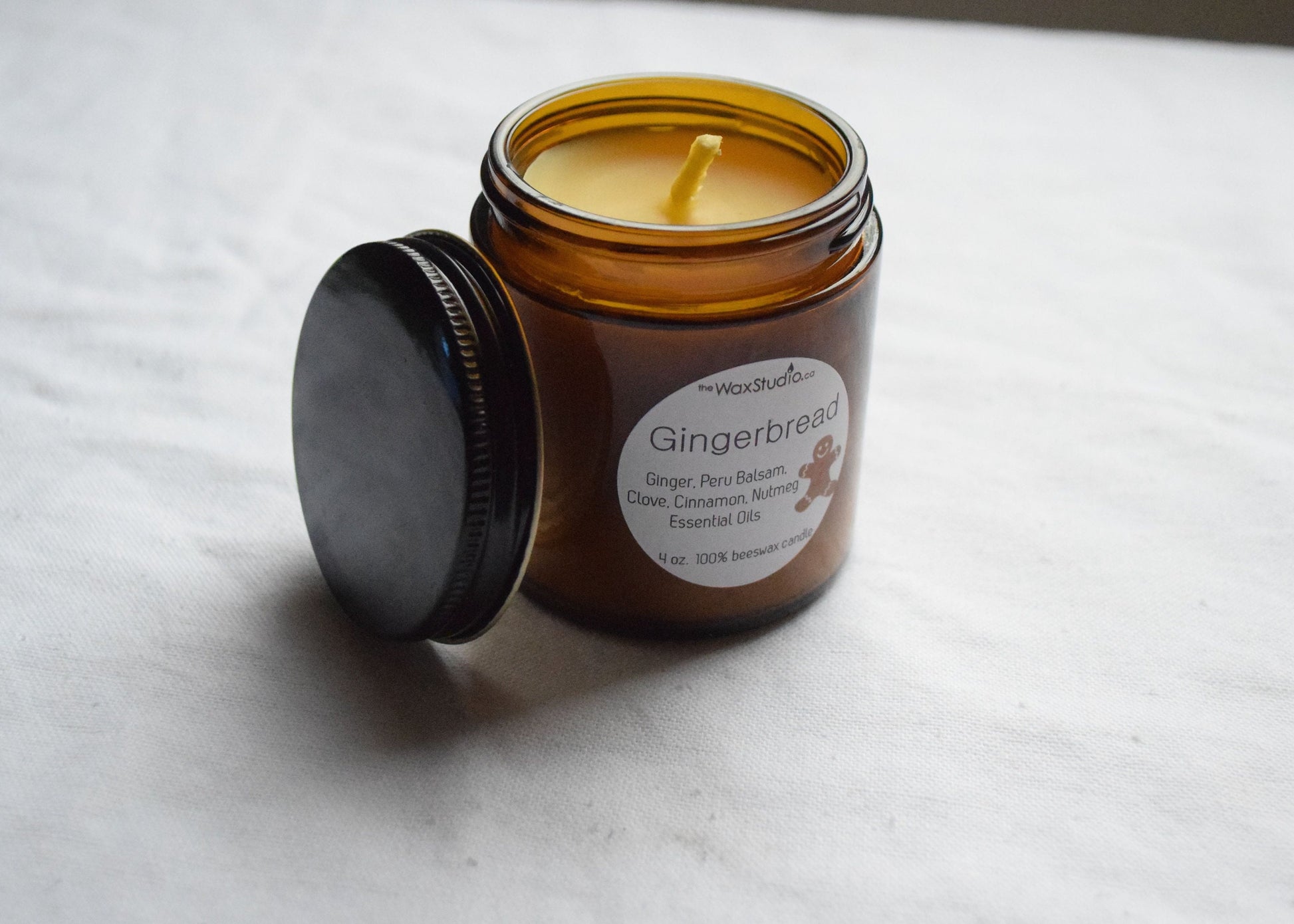 Each single-wicked candle in 100% beeswax comes with a black metal lid.