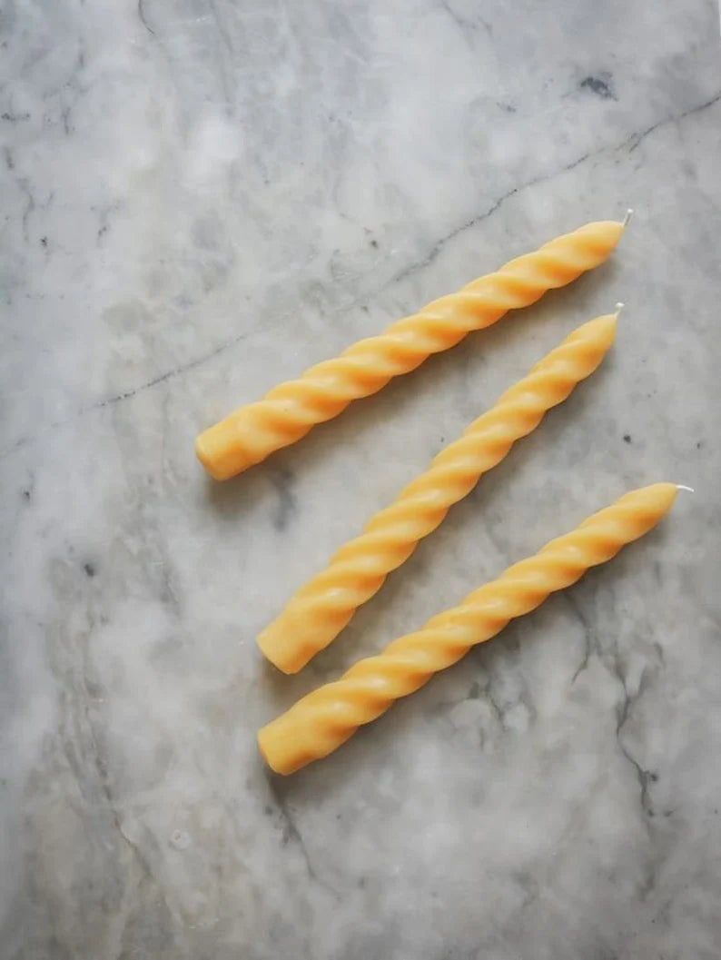 Hygge Home - Pair of Twisted Pure Beeswax Taper Candles, Beeswax, Candles