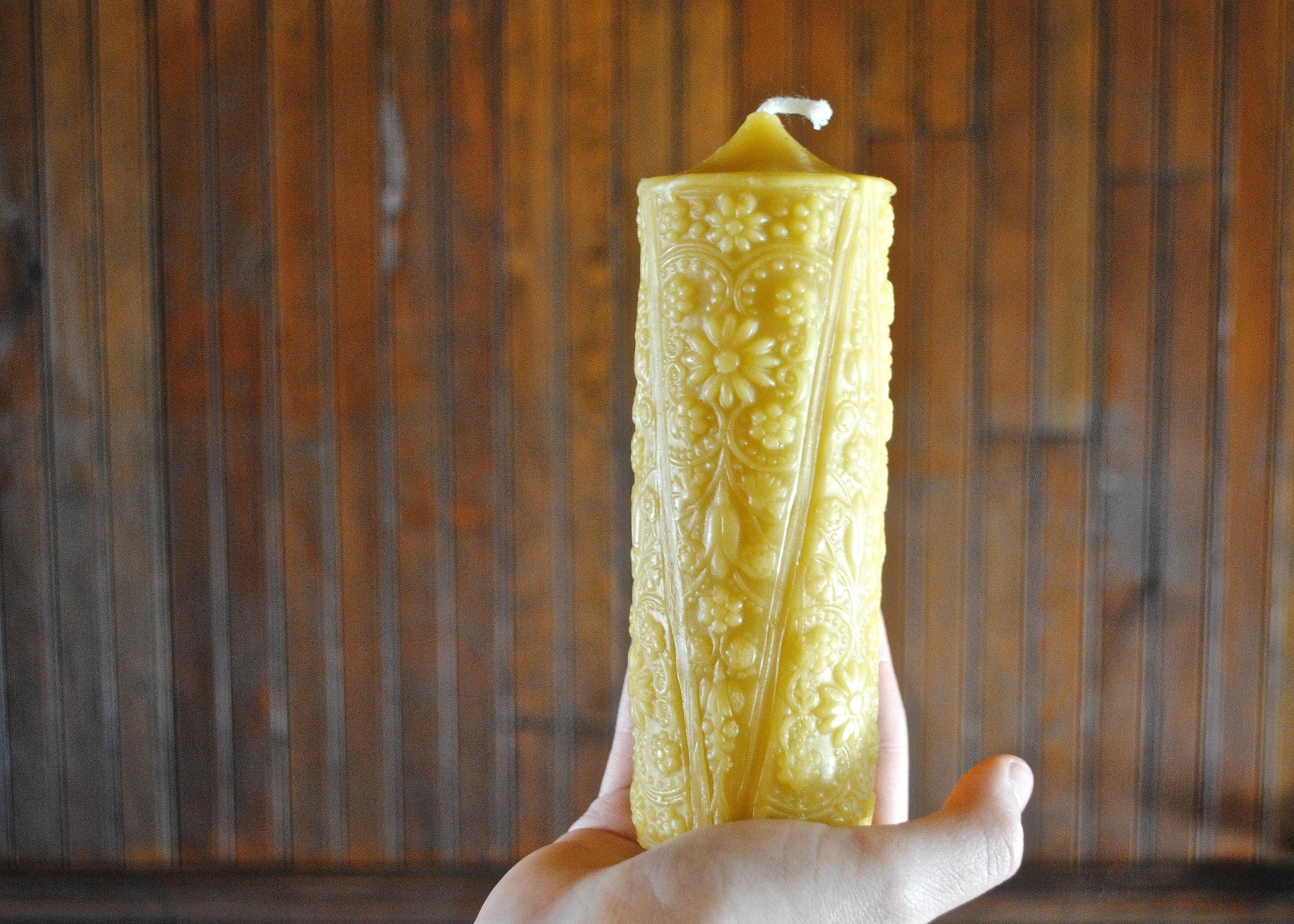 All handcrafted from pure local beeswax I filter myself + pure cotton wick.