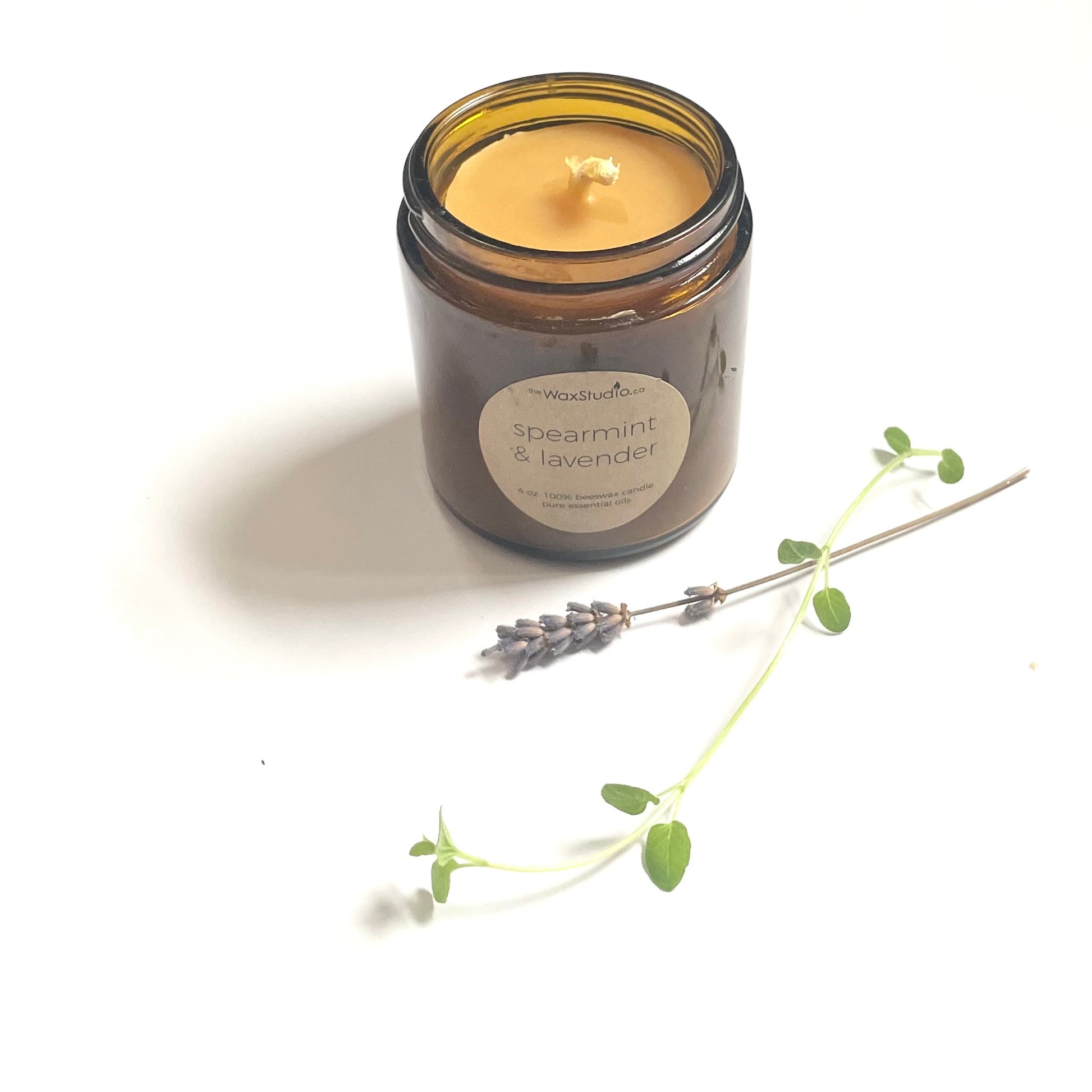 Spearmint and Lavender Jar Candle in Pure Beeswax with Essential Oils / 4 oz. Amber Glass Jar - Candle, Aromatherapy