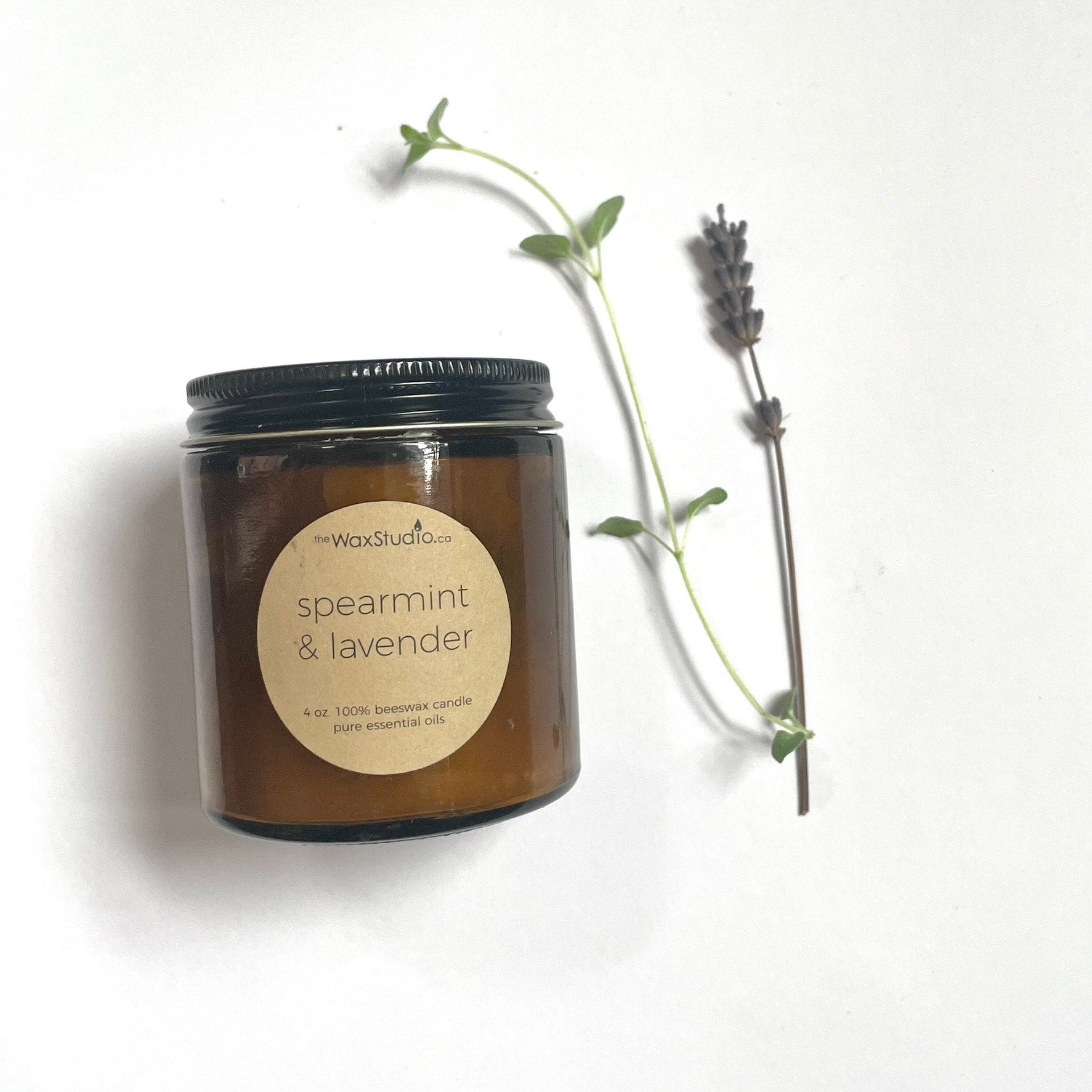 My favorite little jar candle that burns for such a long time. At least 25 hours of burn time in a pretty 4 oz. amber glass jar with black lid. This candle is made from 100% pure beeswax with spearmint + lavender essential oils.