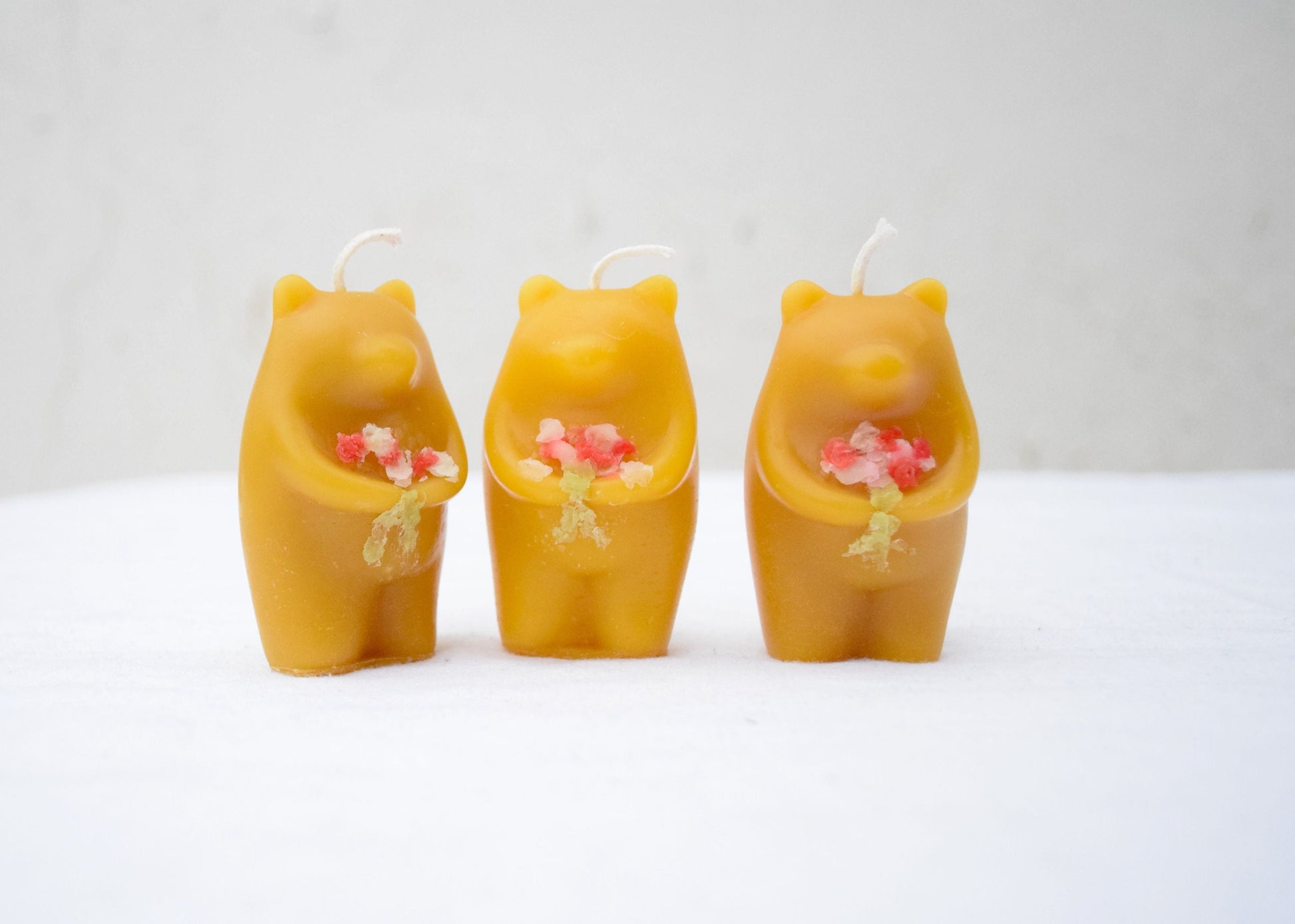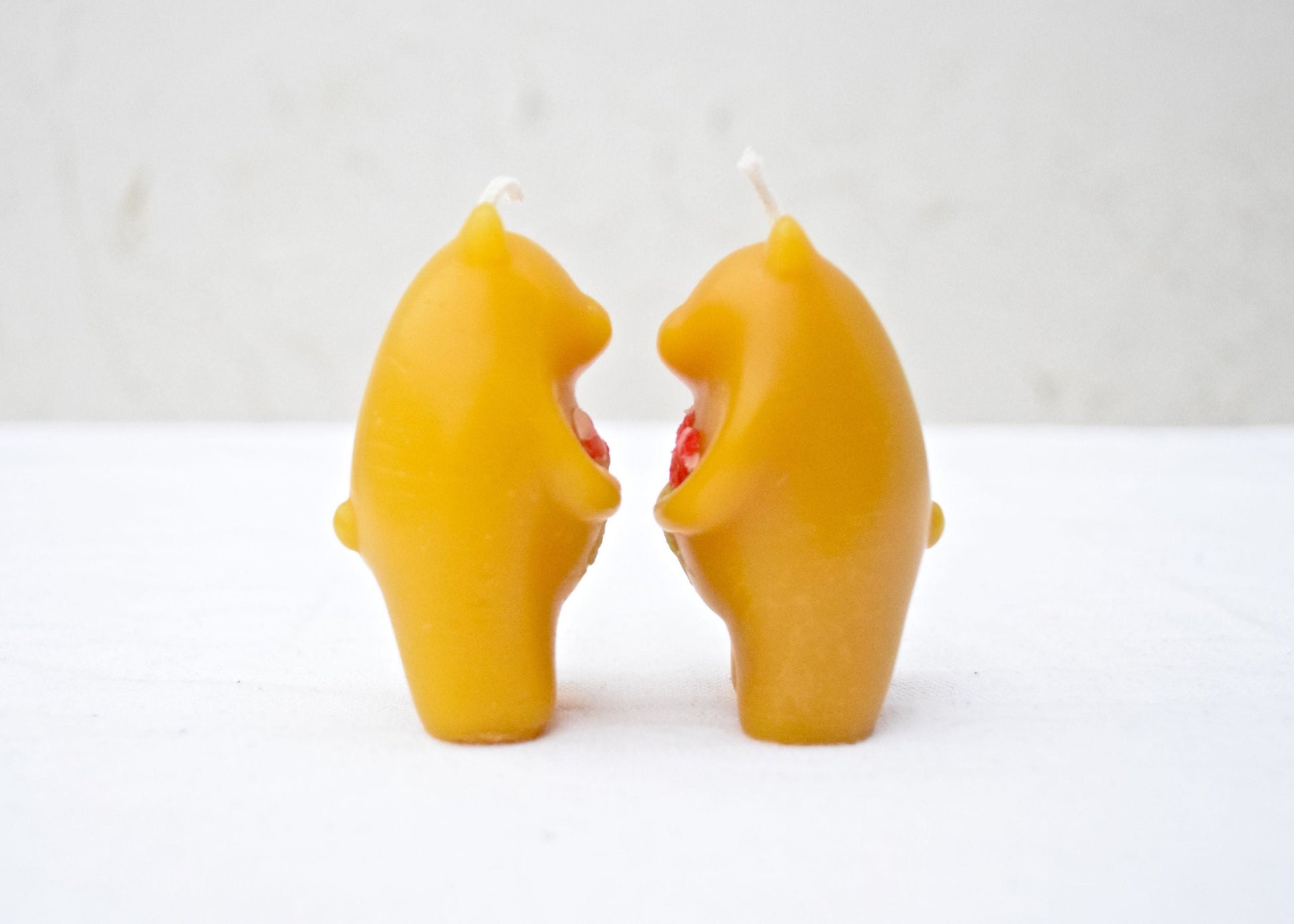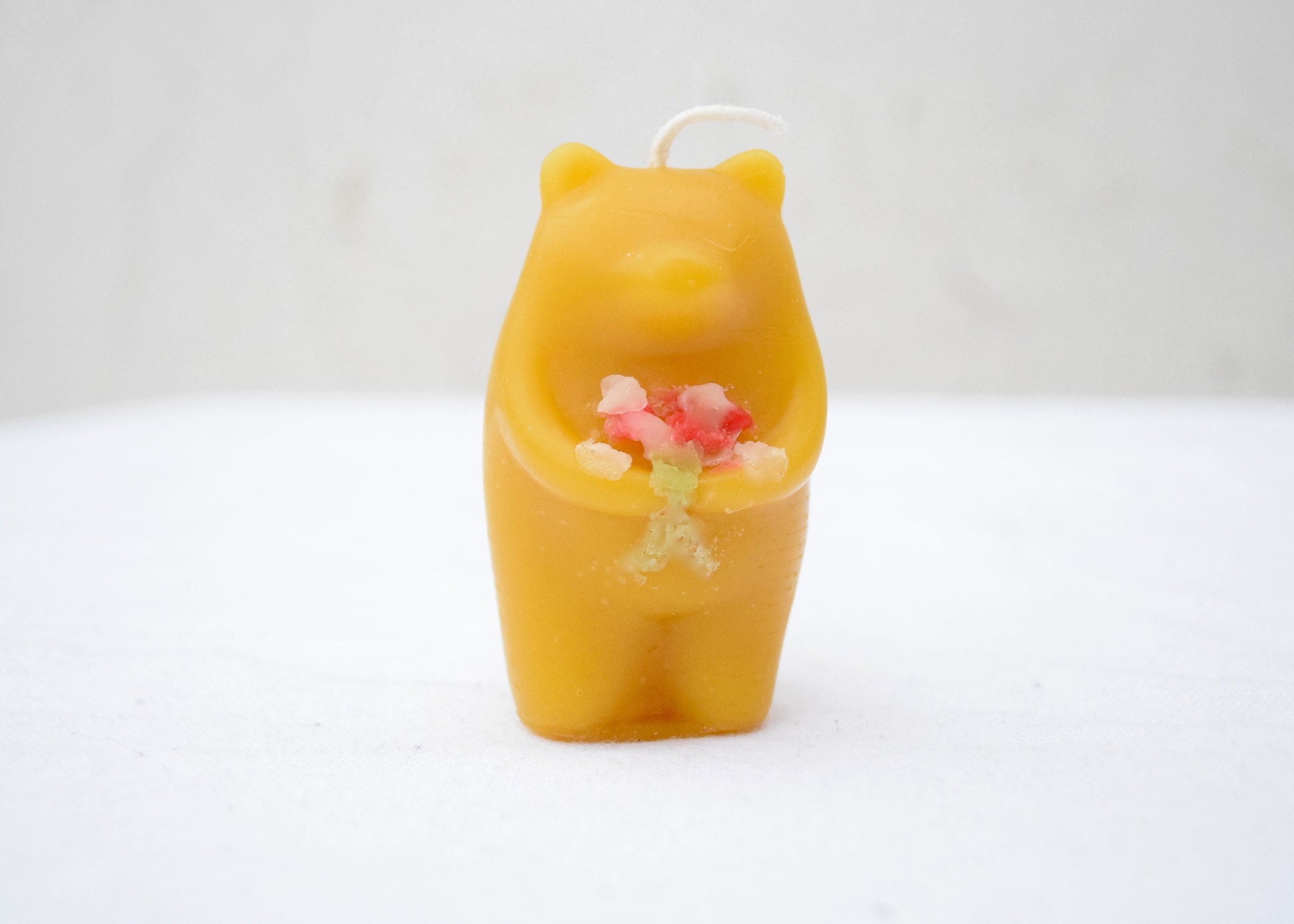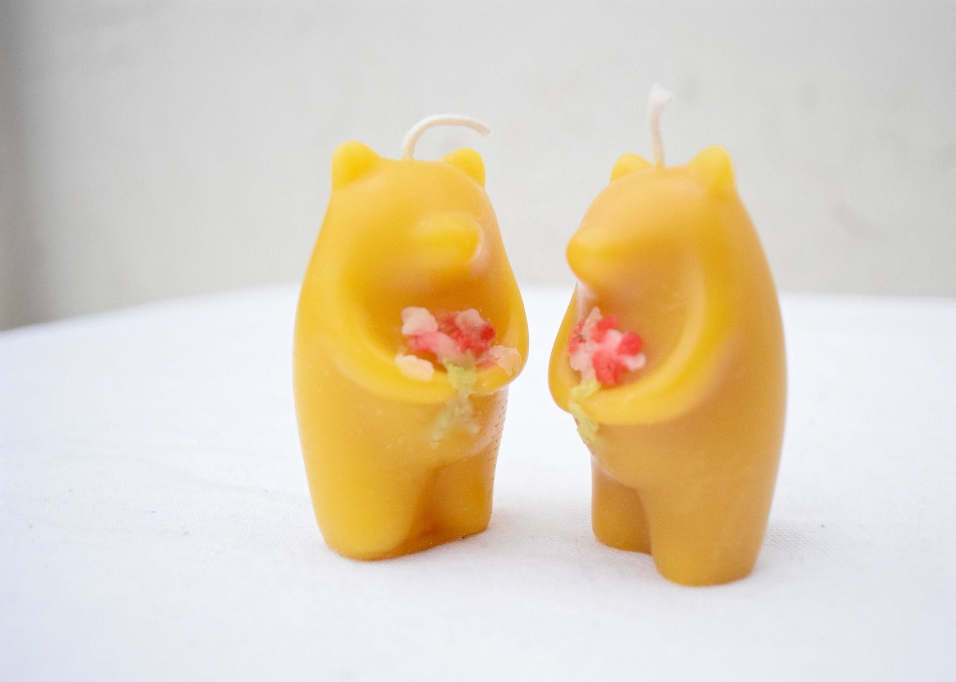 Love Bear Candle - 100% Beeswax // ONE Bear, Candle, Valentine's Day, Beeswax Candle, Love, Handpainted