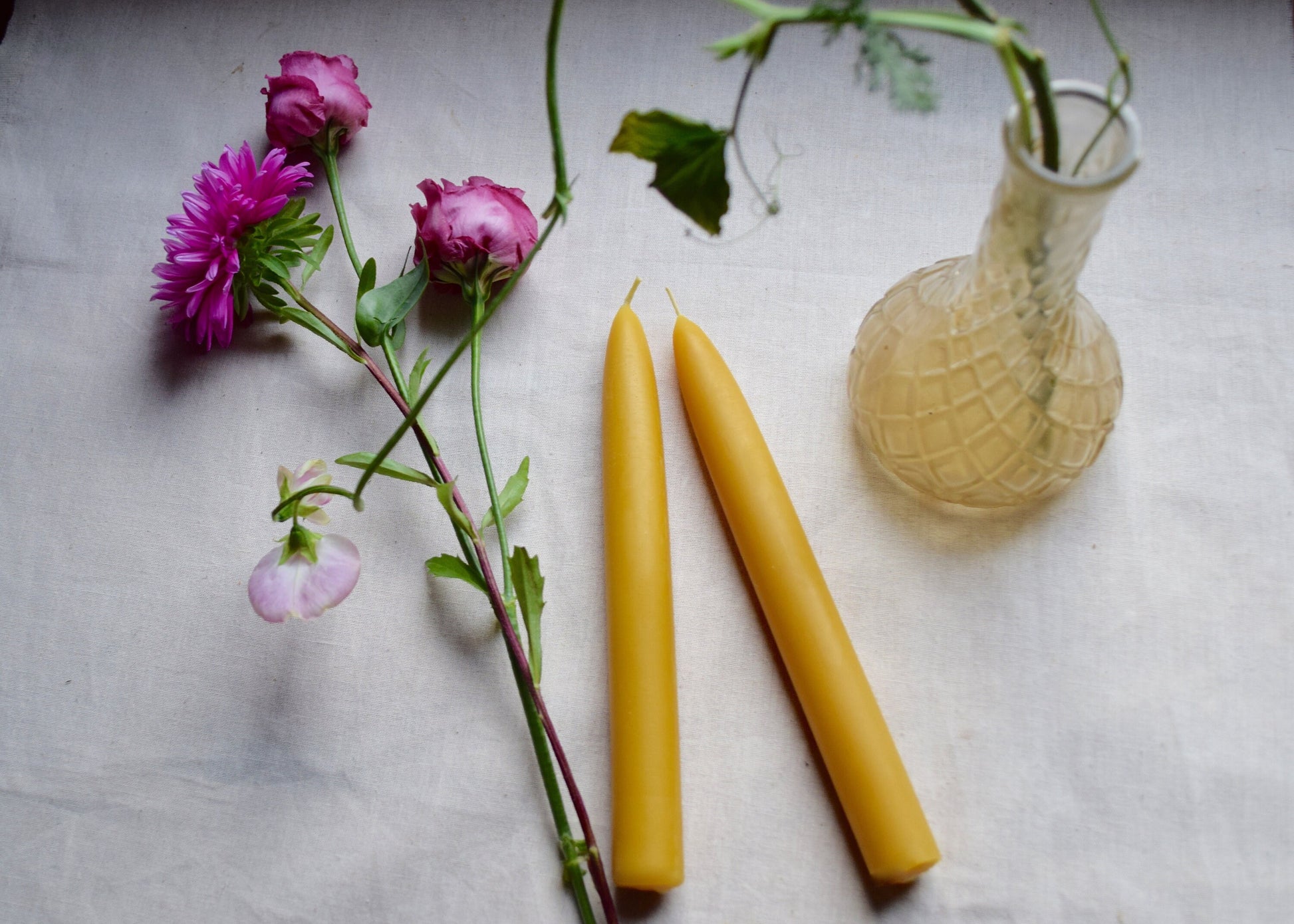 Pair of Two 8" Beeswax Taper Candles// Tapers, Beeswax, Candles // 100% Pure Handfiltered Beeswax, Hygge Home