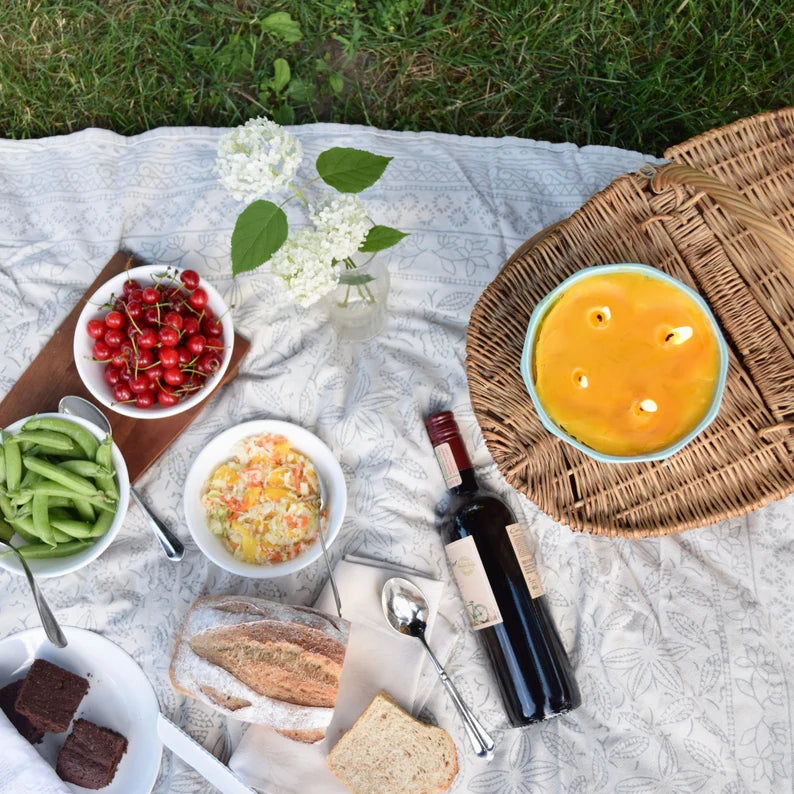 NEW! A huge beeswax candle with a burn time of over 75 hours. A gorgeous turquoise stoneware bowl filled with local beeswax and pure essential oils.