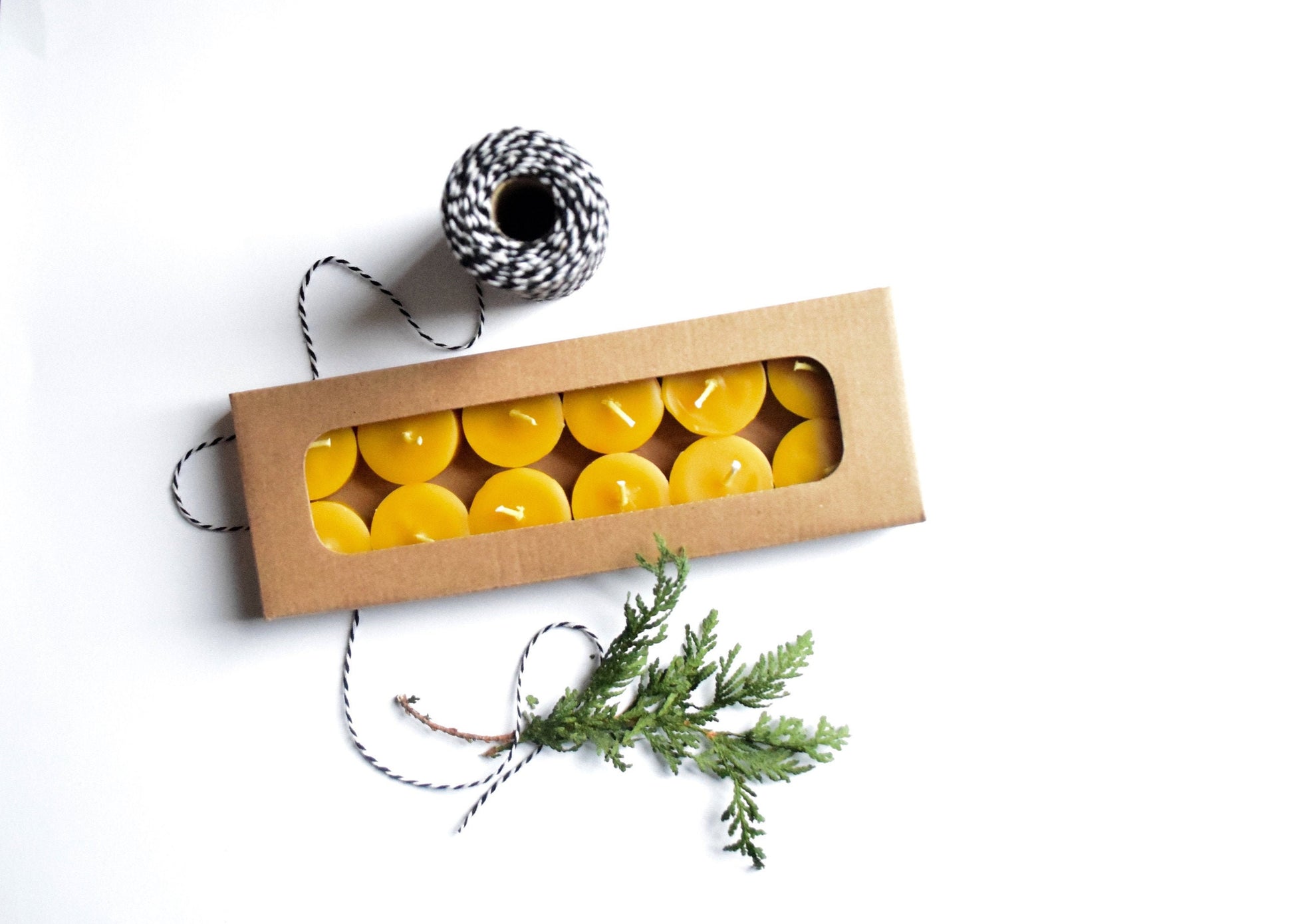 Ready for gifting, here's a box of a dozen pure beeswax tealights.