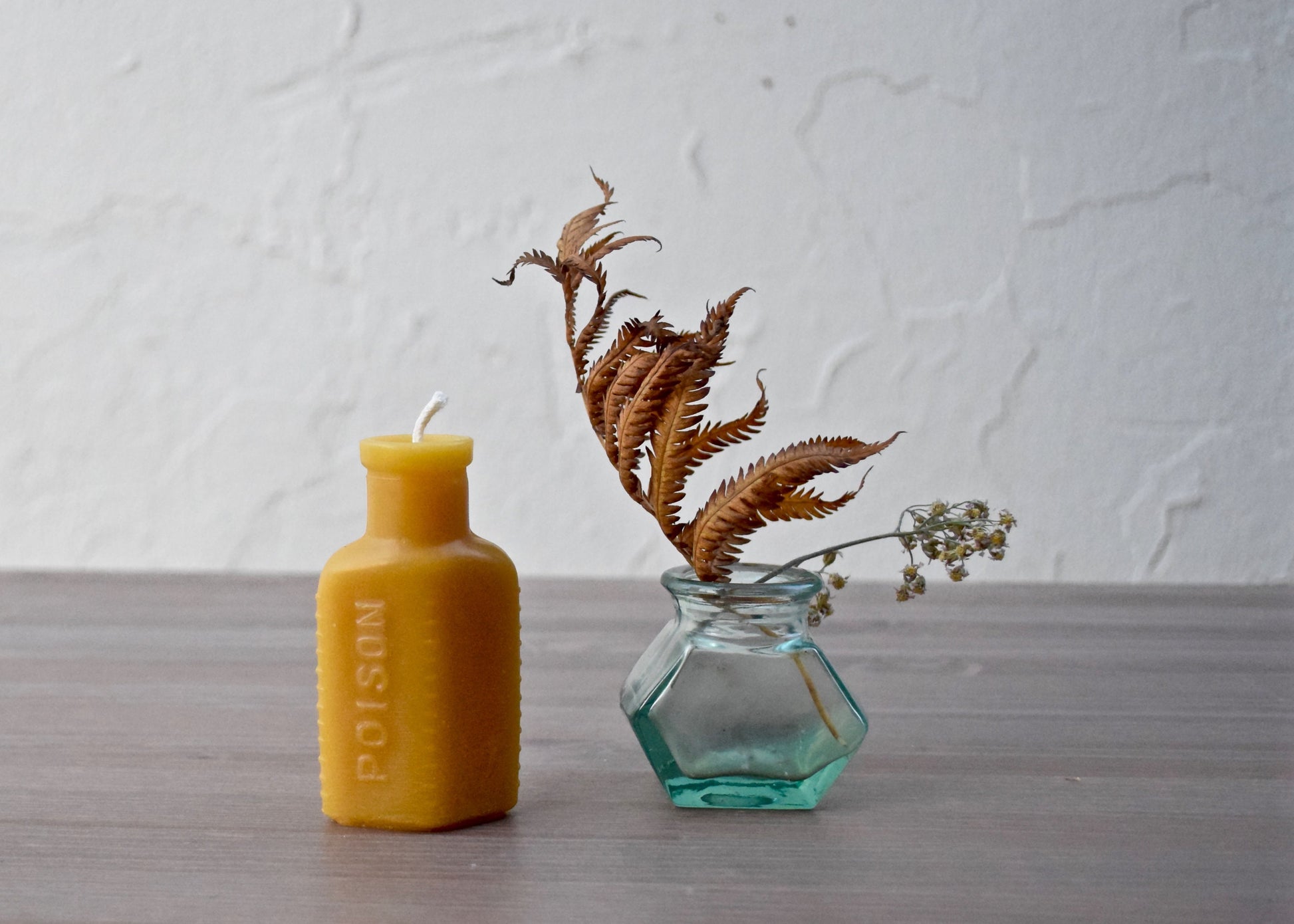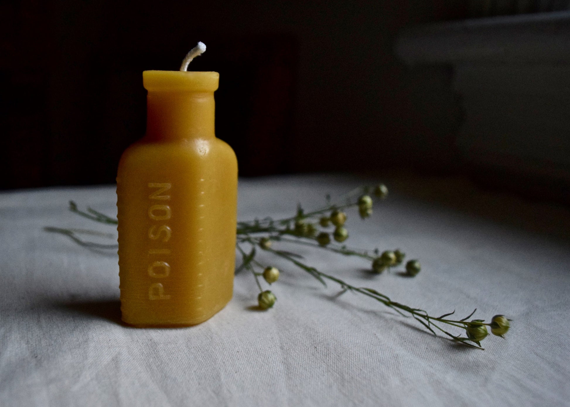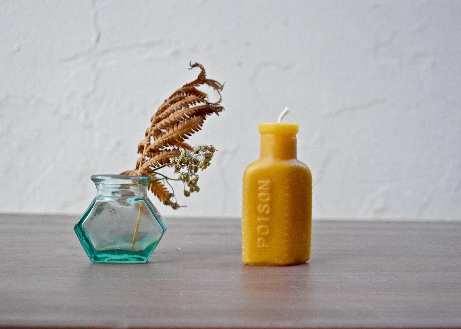 Poison Bottle Candle in Pure Beeswax - Antique 1800s Apothecary Bottle Candle, Burnable Bottle, Beeswax, Beeswax Candle, Vintage