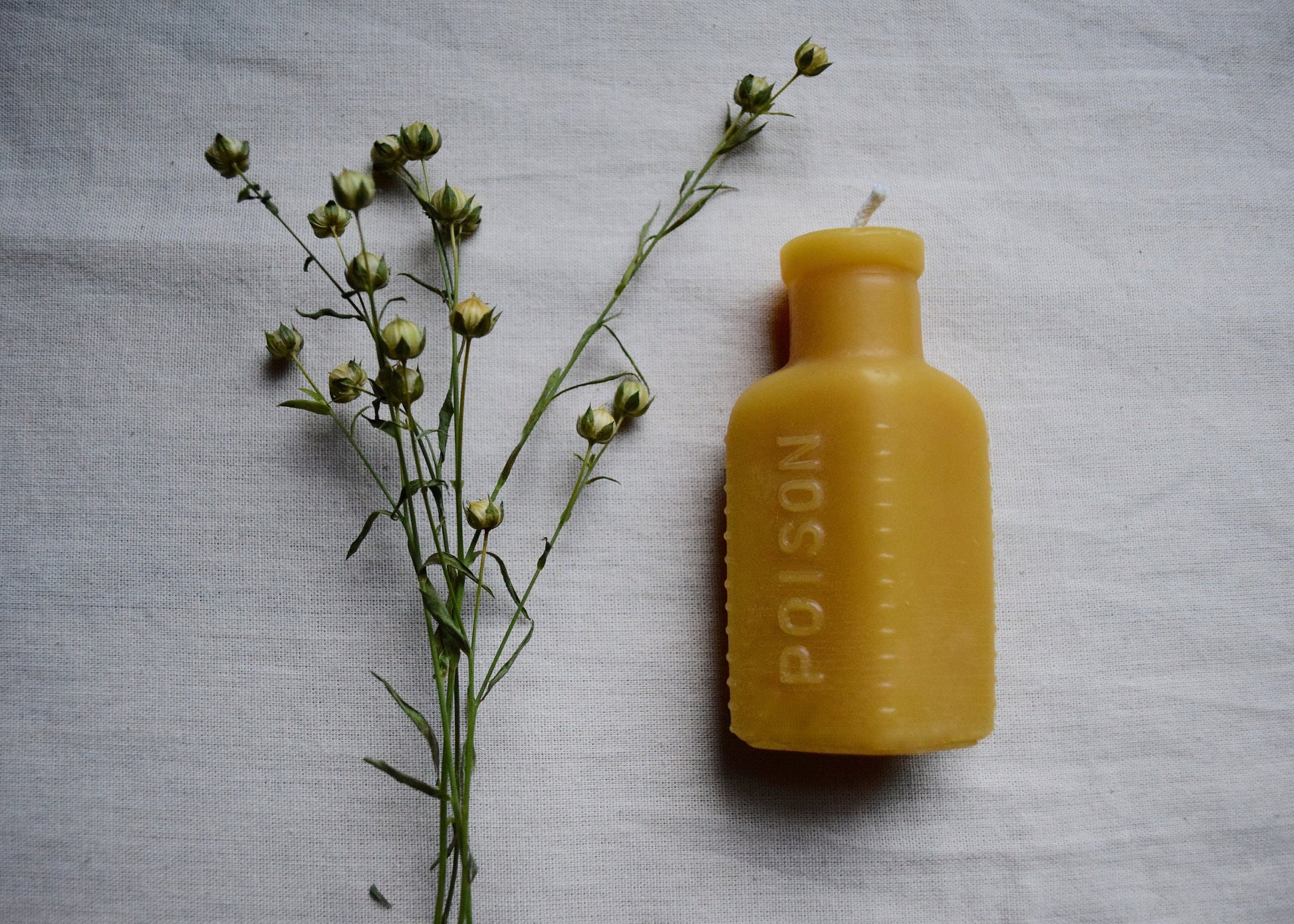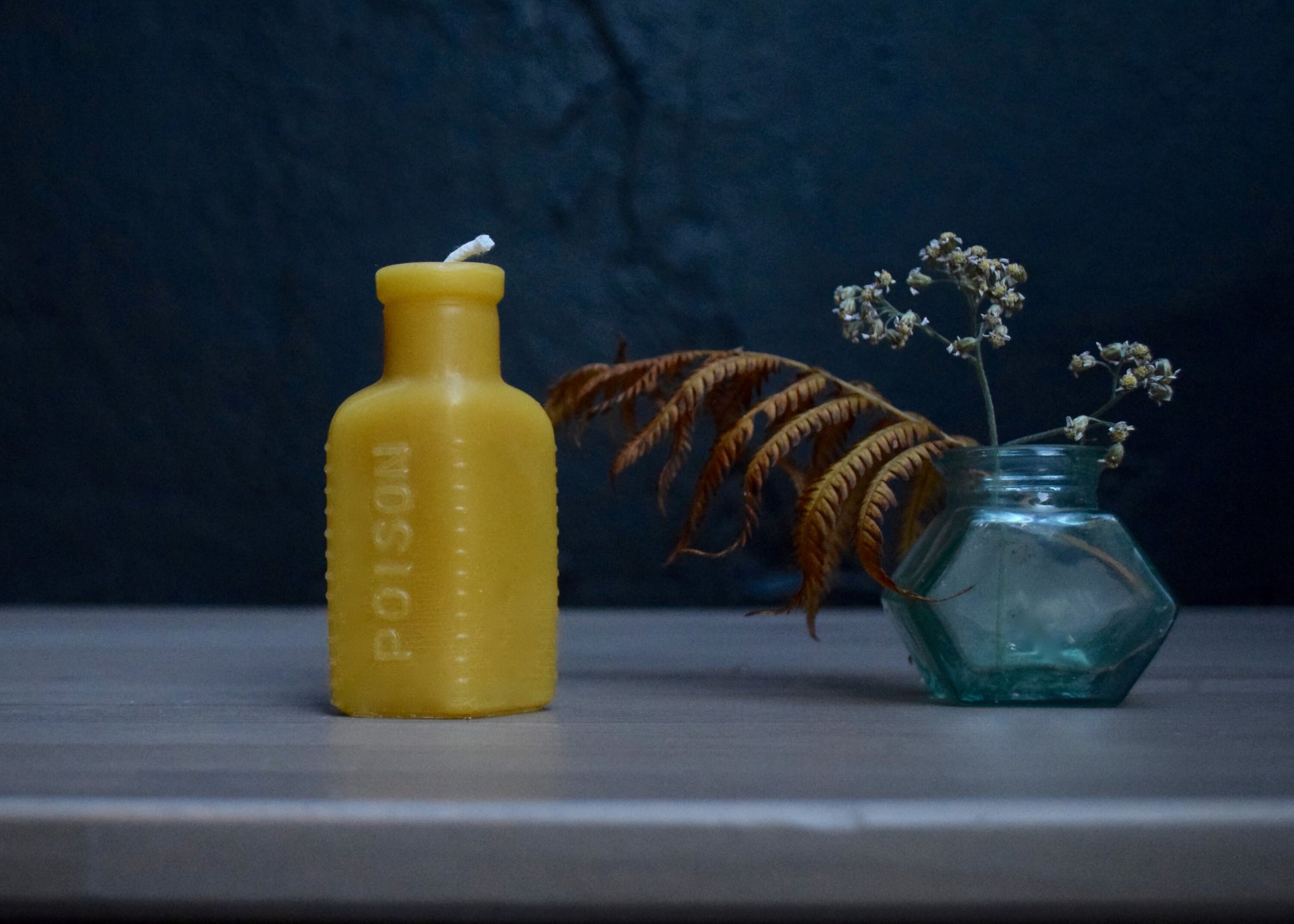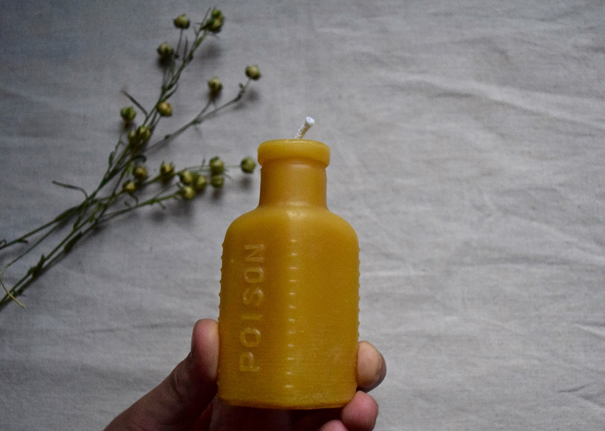 Poison Bottle Candle in Pure Beeswax - Antique 1800s Apothecary Bottle Candle, Burnable Bottle, Beeswax, Beeswax Candle, Vintage