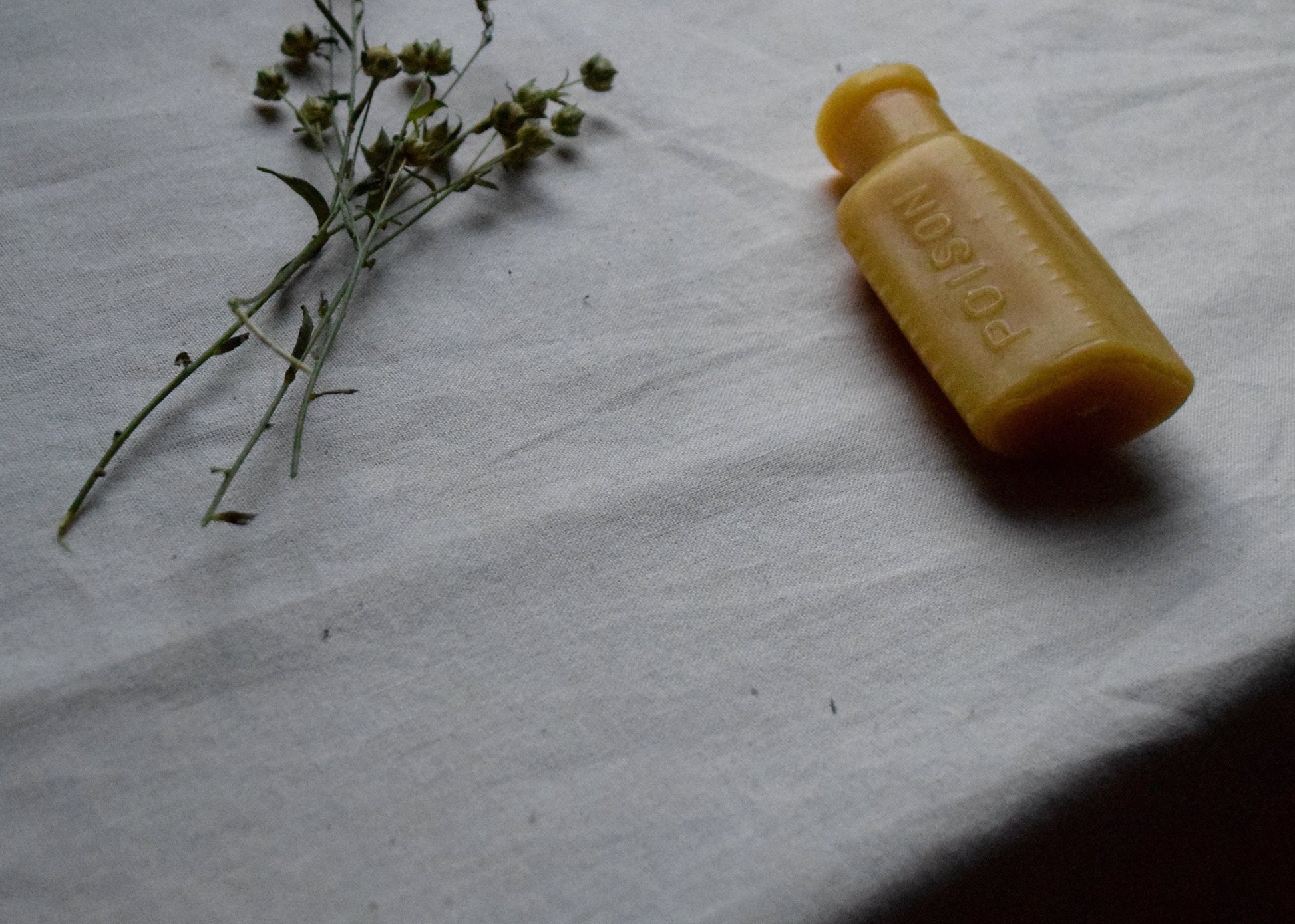 This bottle has raised lines and also embossed letters "POISON" and the bottle is a really distinctive geometric shape (not round like most bottles). This is a one-of-a-kind candle that burns so beautifully. Part of my burnable bottle collection of candles. Handcrafted in pure 100% local beeswax I filter myself plus a pure cotton wick.