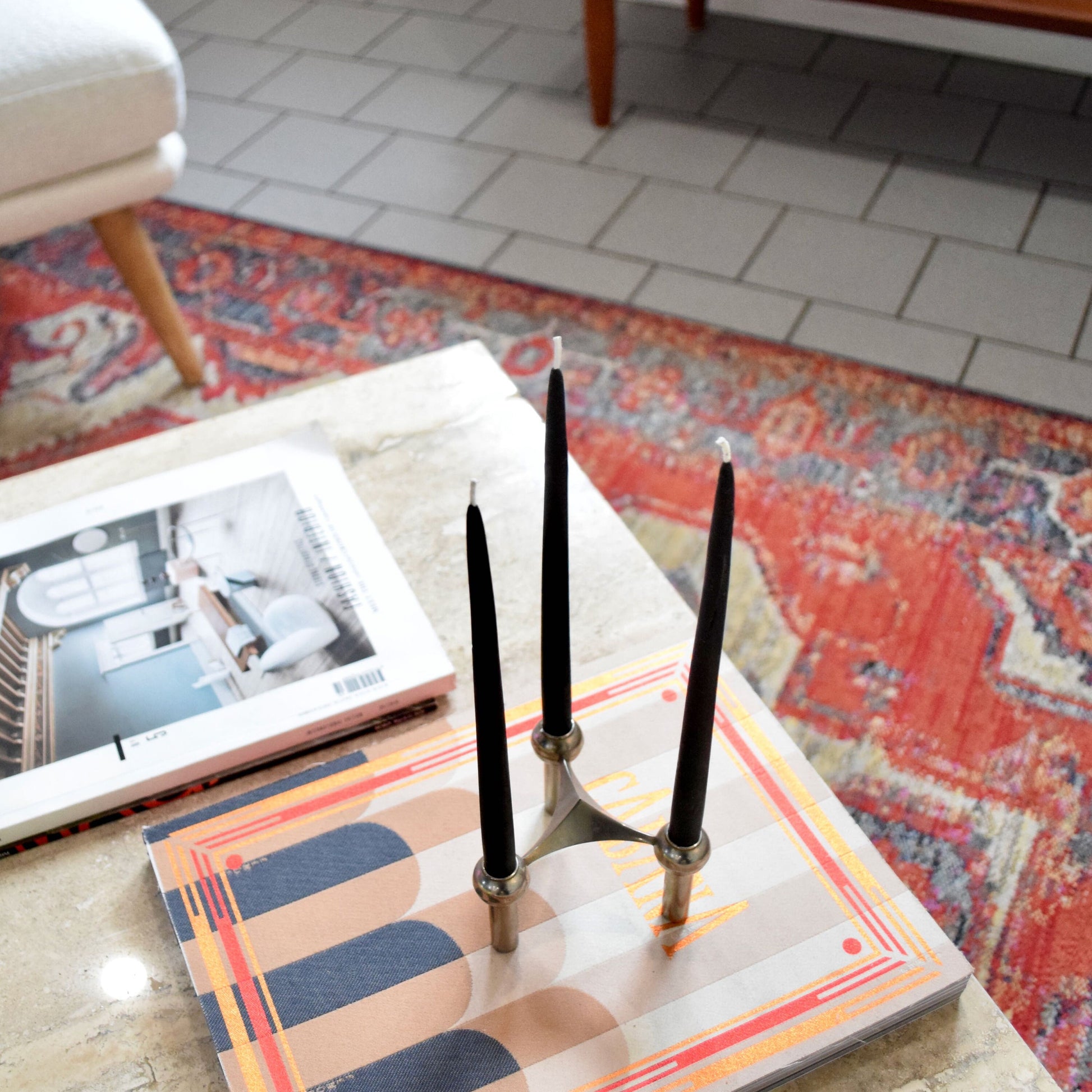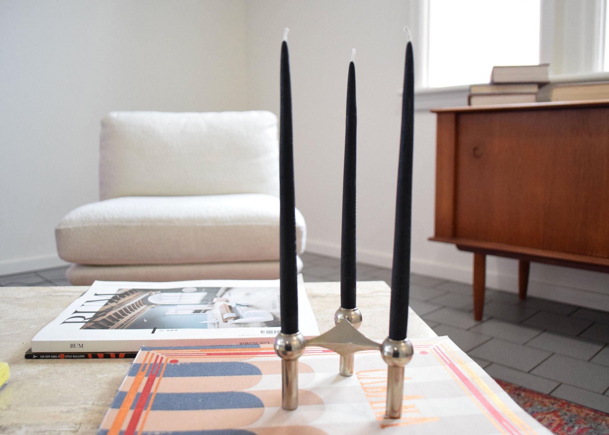 Slim 1/2" Beeswax Tapers set of 6 / Black Beeswax, Candles, SET of 6 // for Vintage Midcentury Modern Holders, Tapers, Beeswax Candles