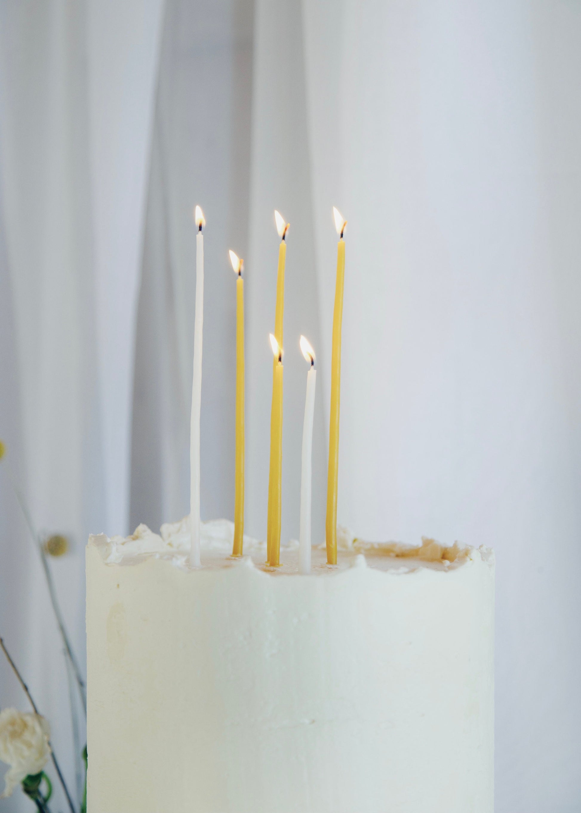 Tall Slim Beeswax Birthday Candles / 7" or 5" - Set of 8 in White or Yellow - Pure Beeswax Candles, Cake Decor, Anniversary