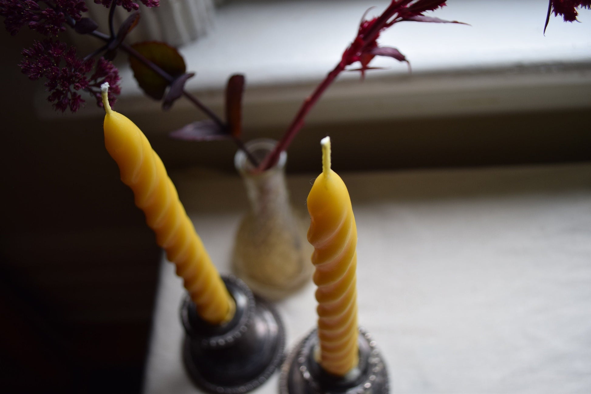 INSTANT TAPER SET OF 6 - Beeswax Taper Candles, 3 pairs in 100% Beeswax, Twisted // Tapers, Twist, Tapered Candles, Beeswax Candles, 8" Tapers, Eco Friendly, Decor