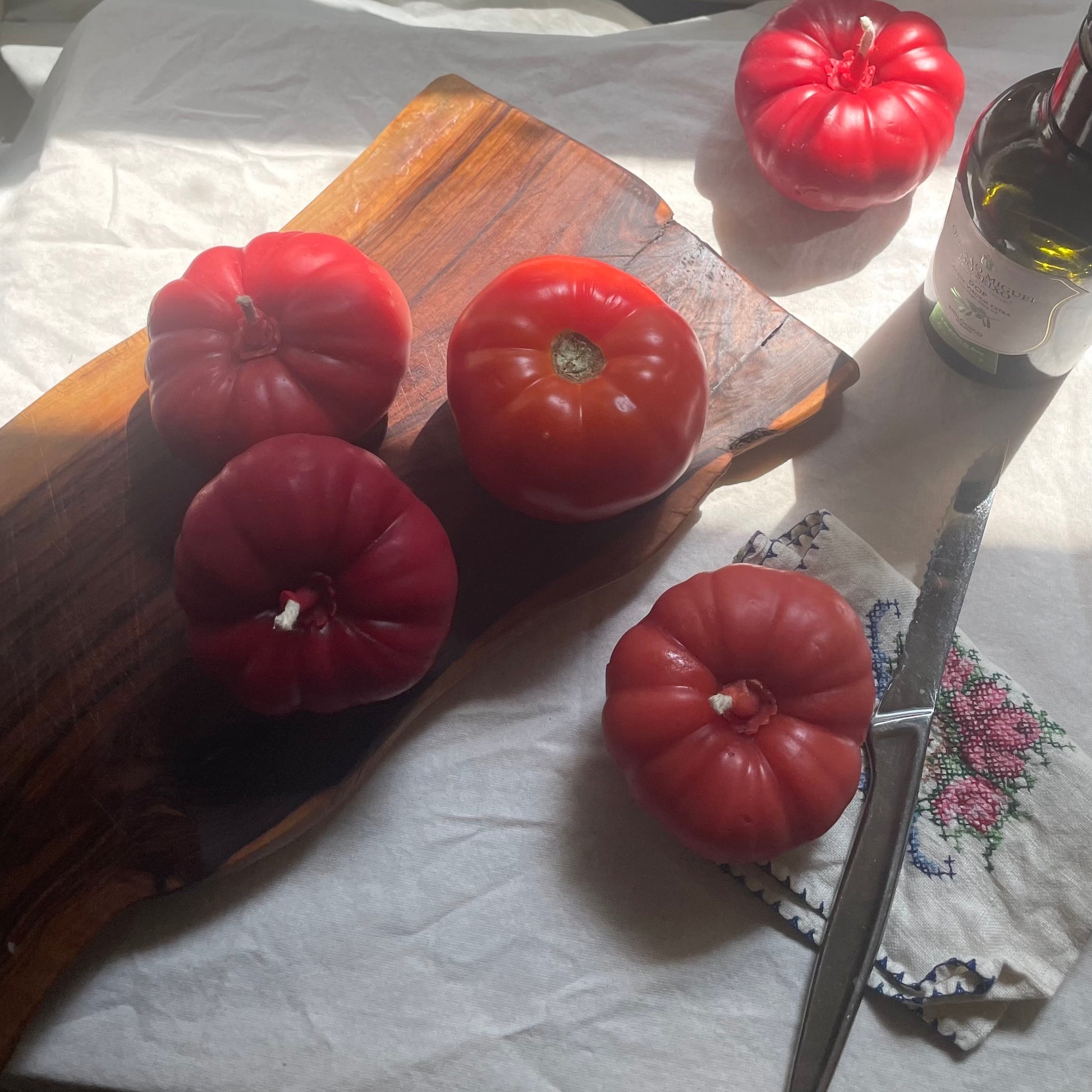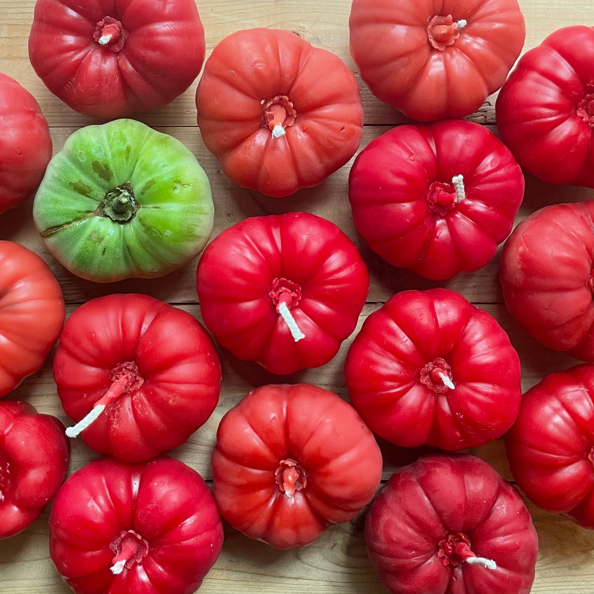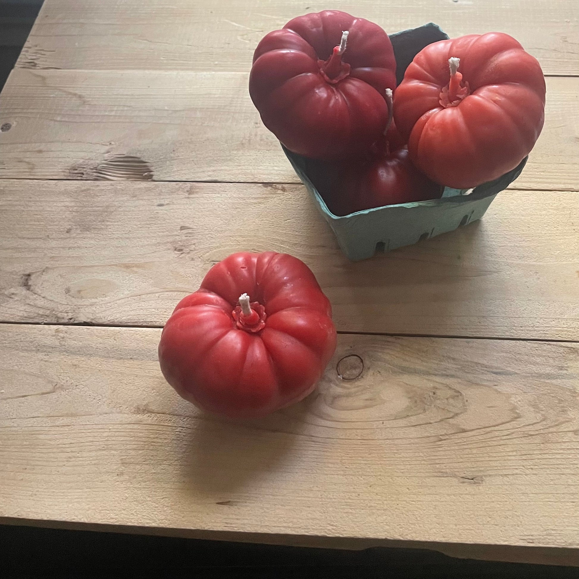 Each tomato is made in 100% pure local, Ottawa-area hand-filtered beeswax. Plus all-cotton wick and Prop-65 tested, eco vegetable-based dye.
