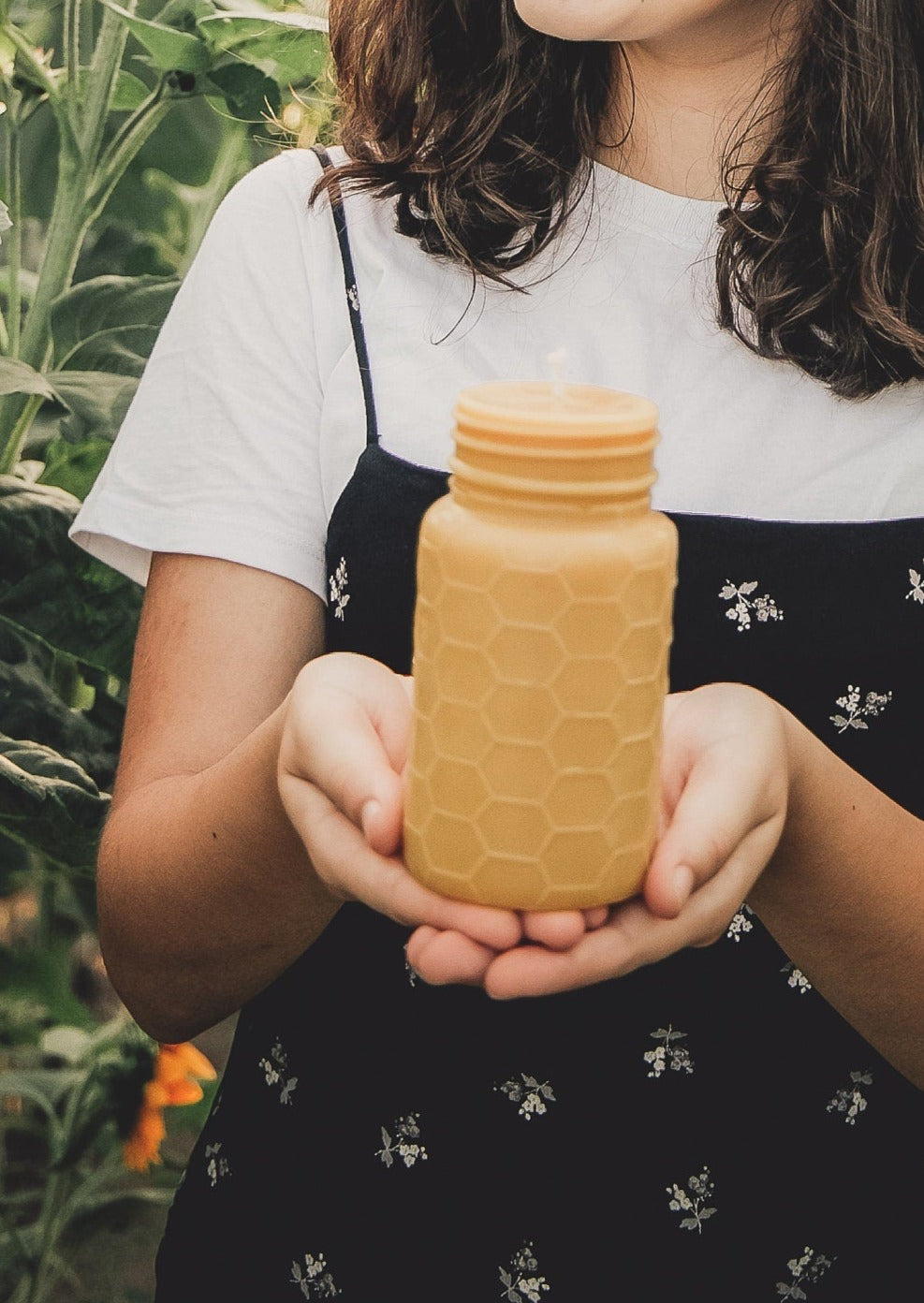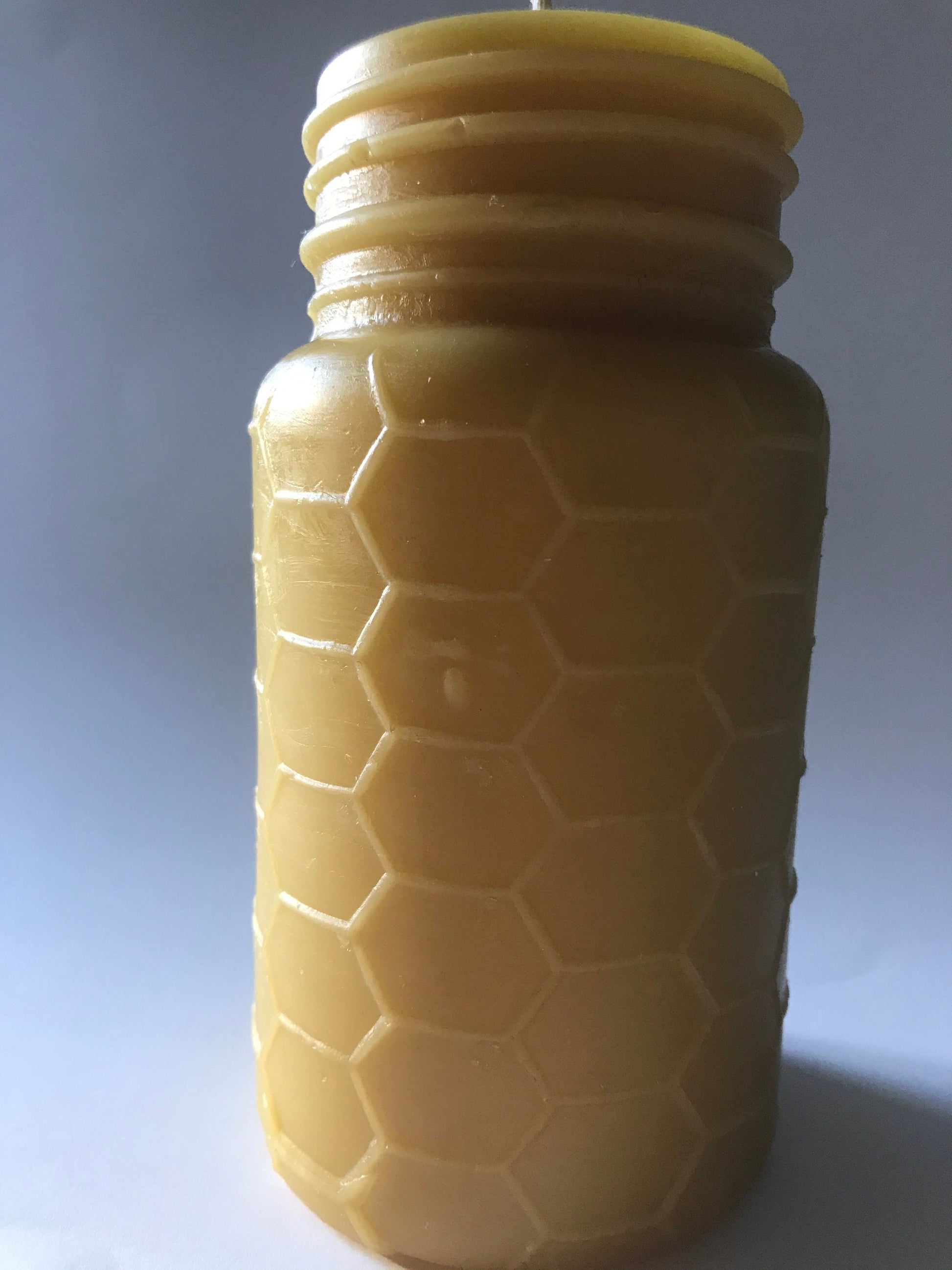 Transylvanian Soviet-Era Honey Bottle Candle in Pure Beeswax - Candle, Beeswax Candle, Bottle Candle - One of a Kind